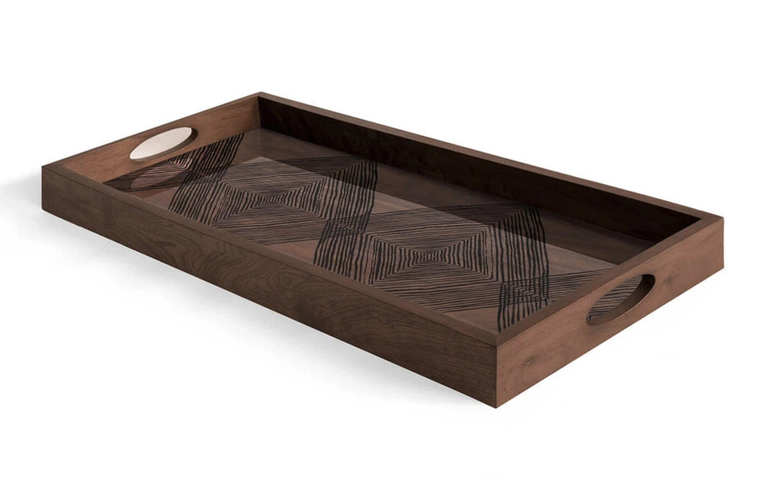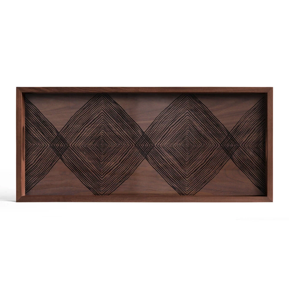 Ethnicraft Walnut Linear Squares Glass Rectangular Tray