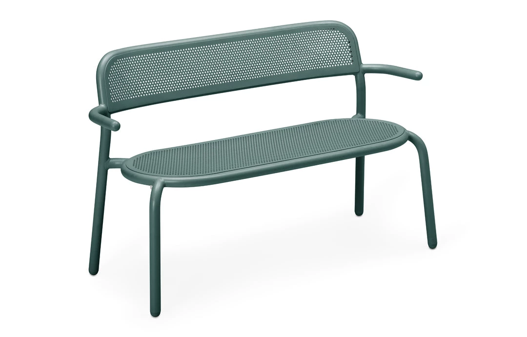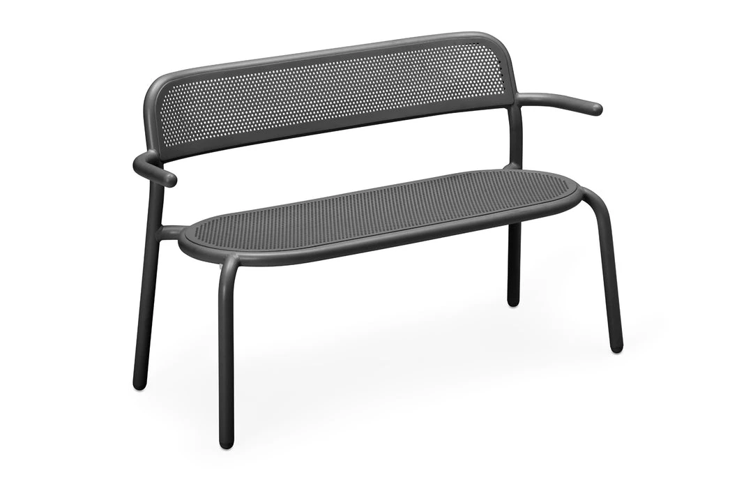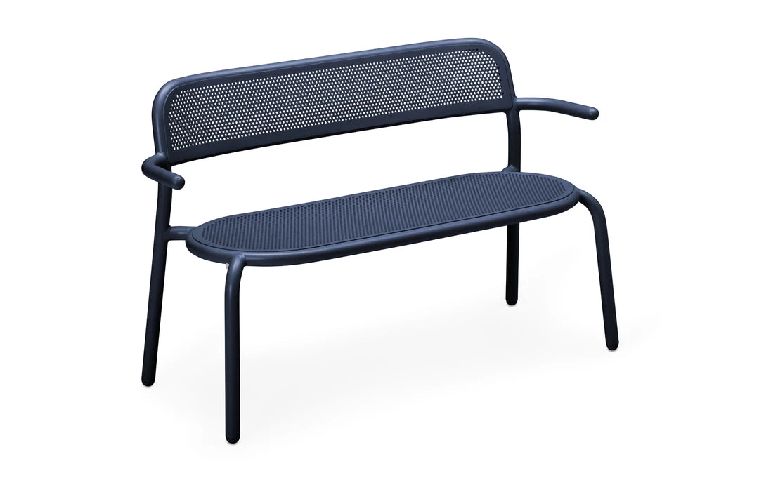 How do you make a cool garden bench? Well, you take a Toní Chair and stretch it so it’s comfortable for two. Toní Bankski is the world’s happiest aluminum garden bench. He will welcome you with open arms, and his rounded shape is a friendly nod at the familiar bistro chair. Bankski will look equally at home in front of, at the back of, or at the side of your house. So sit back and savor the moment on your Bankski moment. This outdoor bench is UV- and corrosion-resistant and fabricated from lightweight aluminum, so he’s easy to lift or stack. And with the matching Bankski Pillow you’ll sit in comfort for many hours. Toní Bankski is a fully fledged member of the Toní family, the most outspoken family you’re ever likely to have in your garden. Use your Bankski with the six-person Toní Tavolo. They’re a perfect match. Made for one another. Or team him up with Toní Bistreau for a dinner for two. Mix and match the colors, or go for monotone Toní.