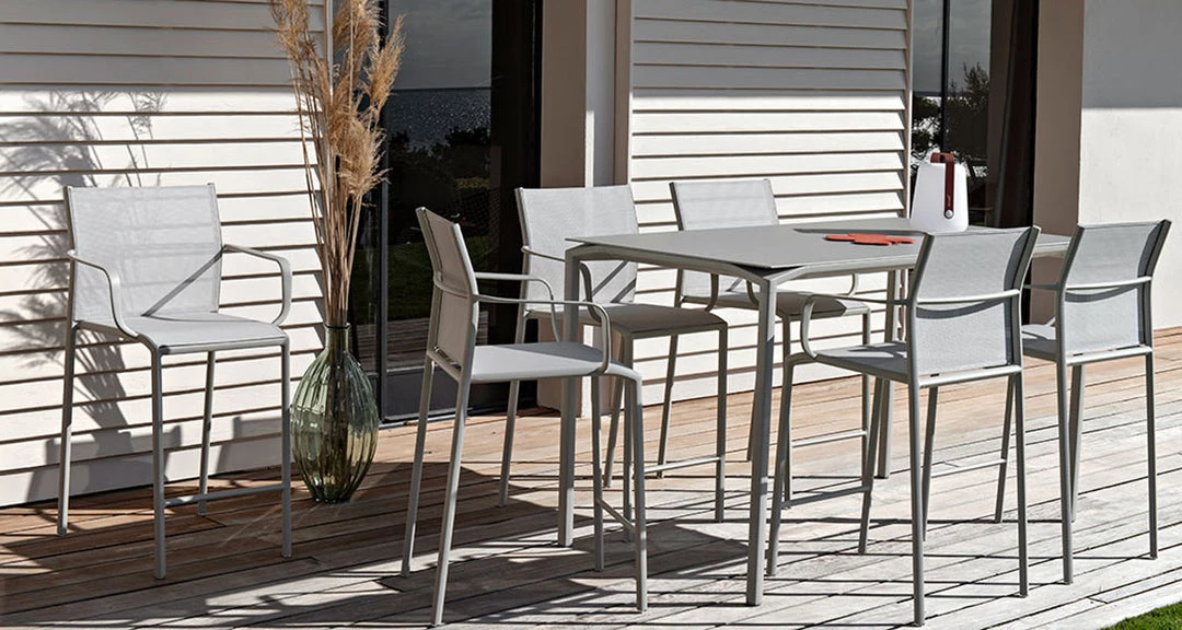 The Cadiz outdoor armchair (chair with armrests for even greater convenience) offers excellent seating comfort thanks to the break in the lines of the backrest and the seat that fit the curves of the body, and to the flexibility of the OTF (Outdoor Technical Fabric).