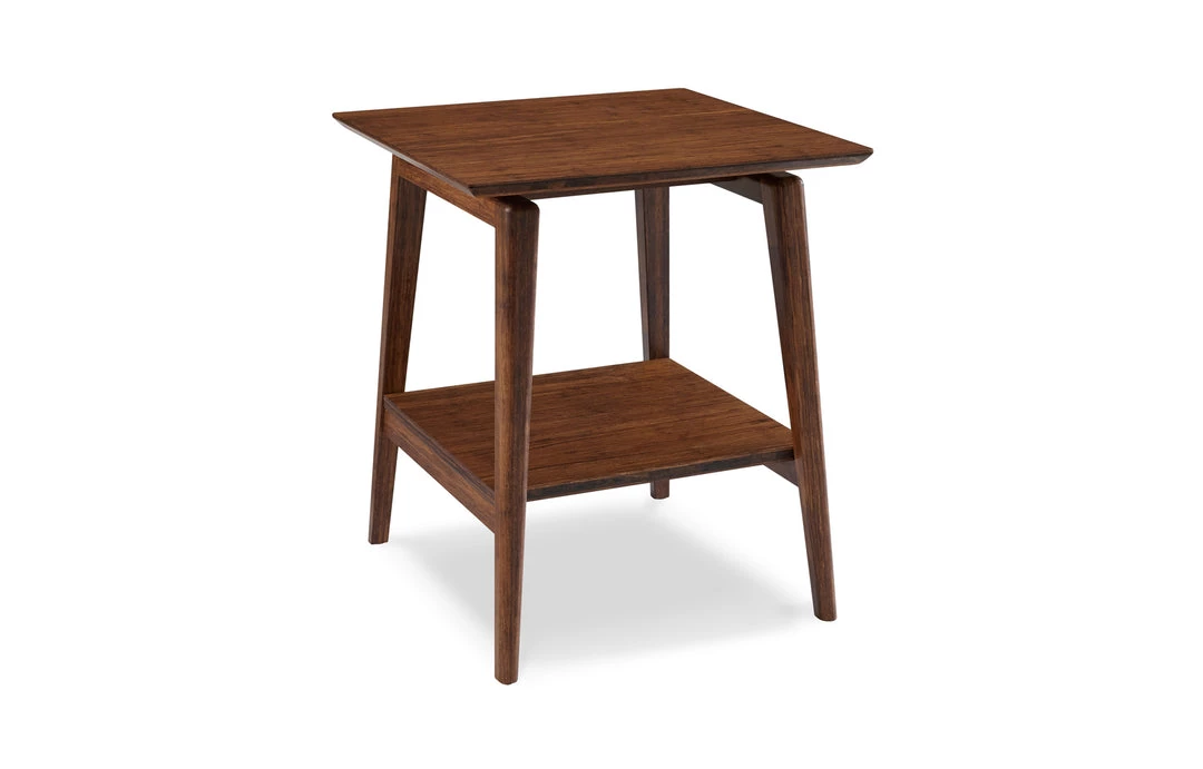 A stylish small-space solution, the sculptural Antares end table brings the simple elegance of Mid-Century design into the modern home. Generous storage shelf for convenience and display. Crafted in 100% solid Moso bamboo with the character, beauty, strength and feel of a truly one-of-a-kind, tropical hardwood. Greenington combines beautiful design, rich color, and a winning sustainability story.