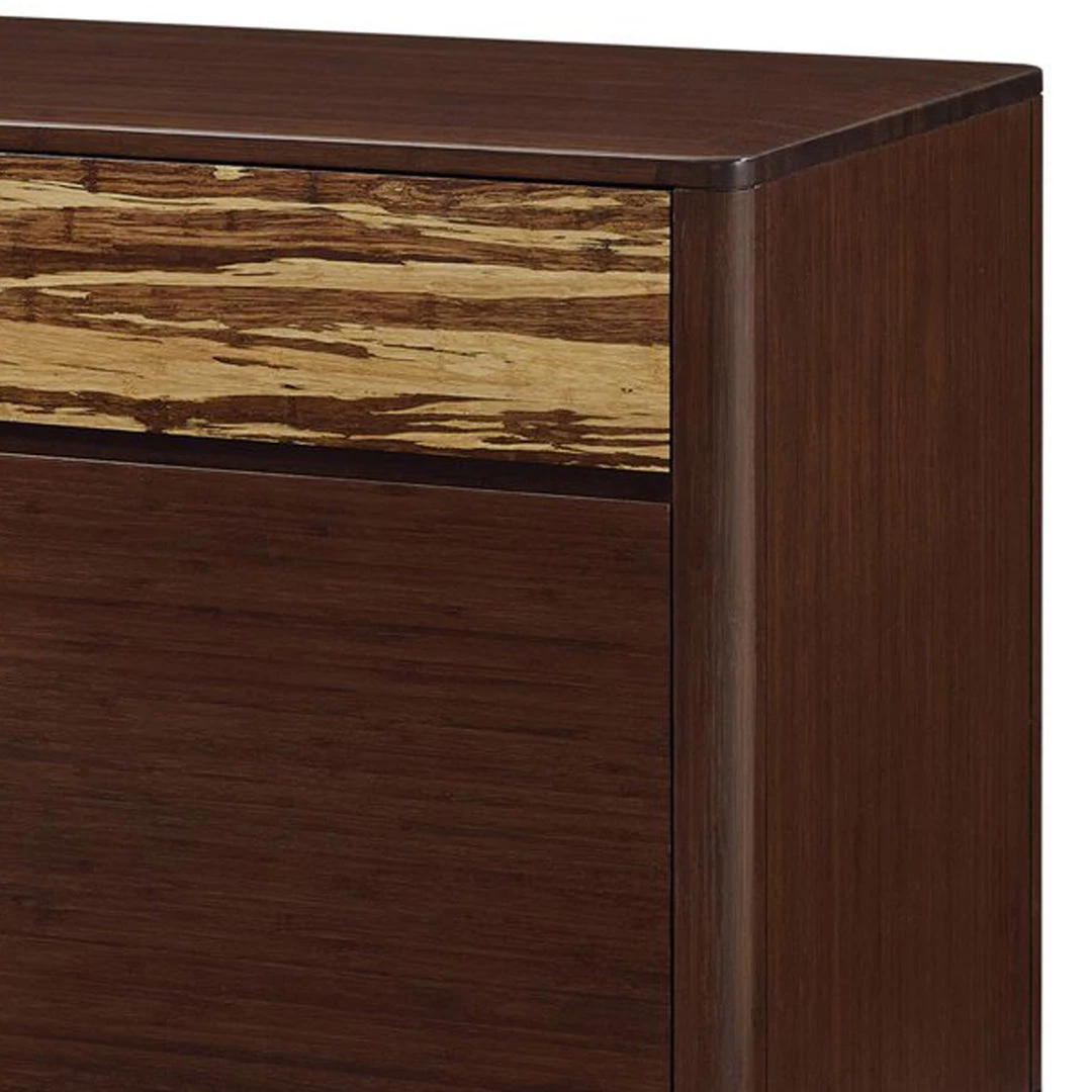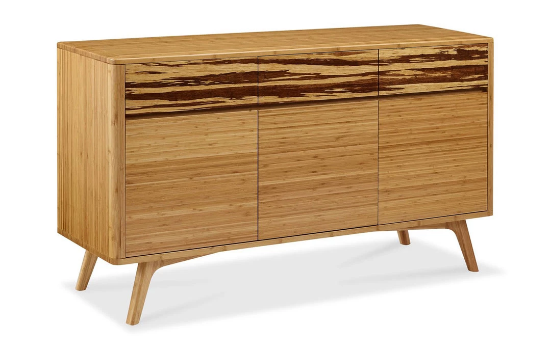 Showcasing the beautiful color and grain of solid bamboo, the Azara sideboard by Greenington features modern architectural lines, and stunning drawer fronts in the natural beauty of exotic tiger bamboo. Beautifully finished on all four sides, the Azara sideboard features include five sided drawer boxes with English dovetail, sleek recessed drawer pulls, under mount hardware and soft closing drawers. The Azara dining collection makes it easy for you to promote sustainability in a lovely, classic and functional way in your home.