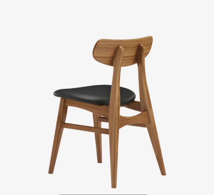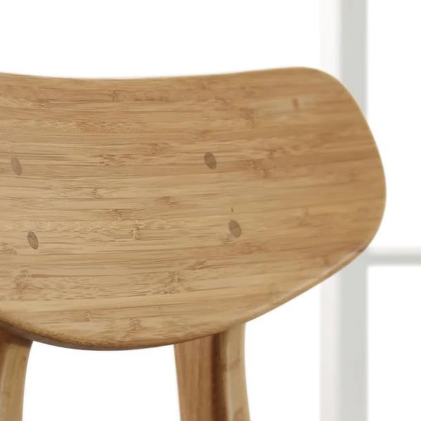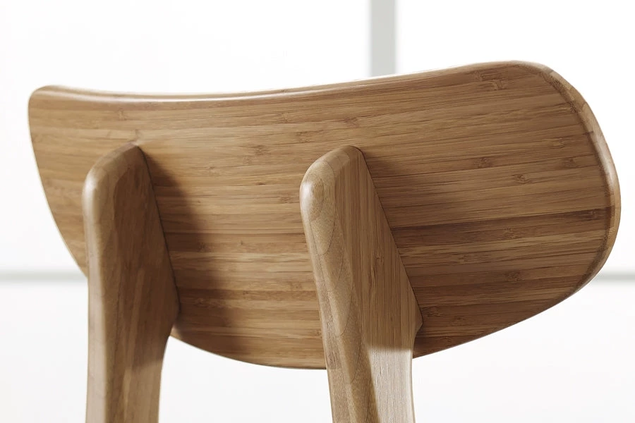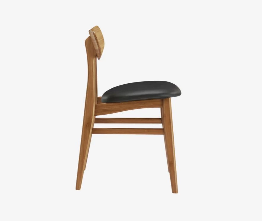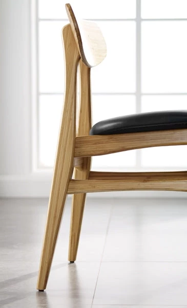 The modern style of the Cassia dining chair takes its cue from classic Danish mid-century design. Cassia’s light graceful silhouette, tapered legs, and gently rounded supports combine to bring beauty, strength and comfort to your dining room. Expertly crafted in earth friendly solid bamboo with a soft upholstered black leather seat, the Cassia ships fully assembled, with two chairs per box. Shown in caramelized finish. No stain is used, the caramelized color is achieved with heat and pressure. Variation in grain and color enrich the natural beauty of bamboo furniture and make each piece unique. Slight differences in bamboo shade colors are signs that the furniture has been crafted from solid bamboo and is considered a benchmark of quality.