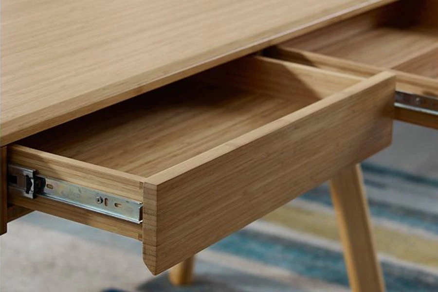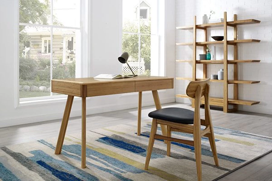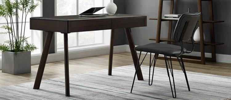 A stylish small-space solution, Greenington’s Jasmine writing desk brings the simple elegance of Mid-Century design into the modern home. The Jasmine writing desk features storage drawers which span the entire width of the desk, plus cord management, power and USB outlets, offering lots of function for your home office. Available in classic caramelized or Havana finish, the Jasmine desk measures 48” x 24” x 30”.