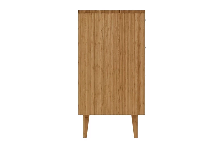 Showcasing the beautiful color and grain of solid bamboo, the smartly scaled Sienna six drawer double dresser features contemporary styling, clean lines and beautifully beveled edges. The Sienna double dresser is beautifully finished on all four sides, and features a five sided drawer box with English dovetail, sleek matte black stainless steel pulls, under mount drawer glides, and soft closing drawers. Available in caramelized.