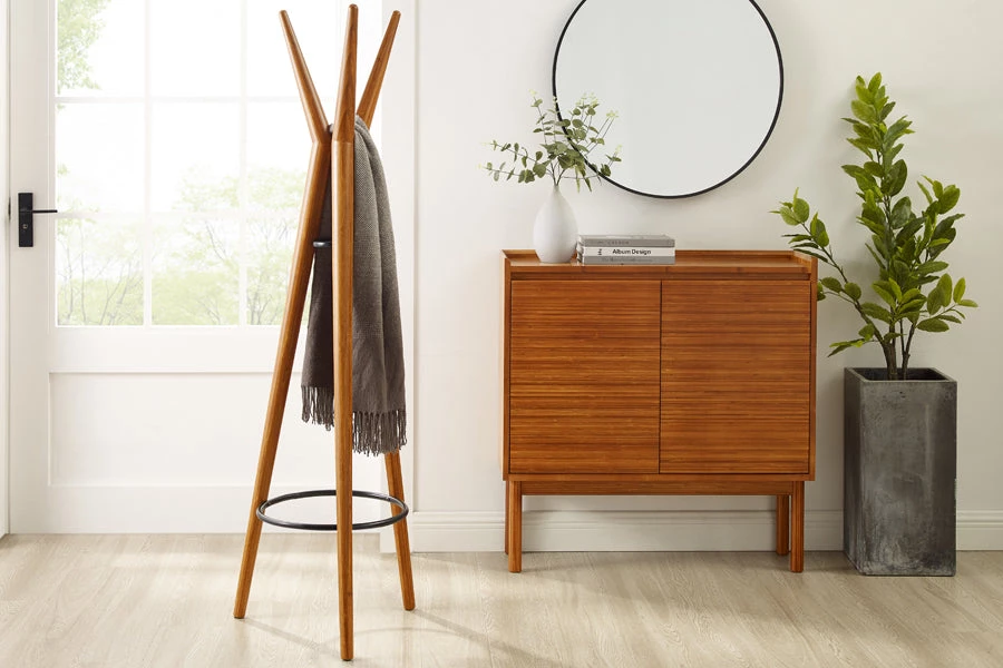 Greenington’s Spire, solid Amber bamboo coat tree, splays three beams into a minimal and modern form. Spires slim profile and streamlined shape easily fits any floor plan, creating space for coats, bags, and umbrellas. Amber’s vibrant colors are sustainable and earth friendly. Amber is not a surface stain, the color is created using an innovative caramelization process using heat, steam, and pressure to transform the solid bamboo material into Amber’s deep color. Discover the expert craftsmanship packed into each piece of Greenington bamboo furniture. Greenington furniture is made using an eco-friendly, renewable resource harvested from fully sustainable and rapidly growing forests.