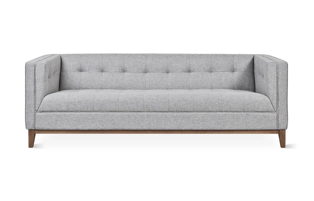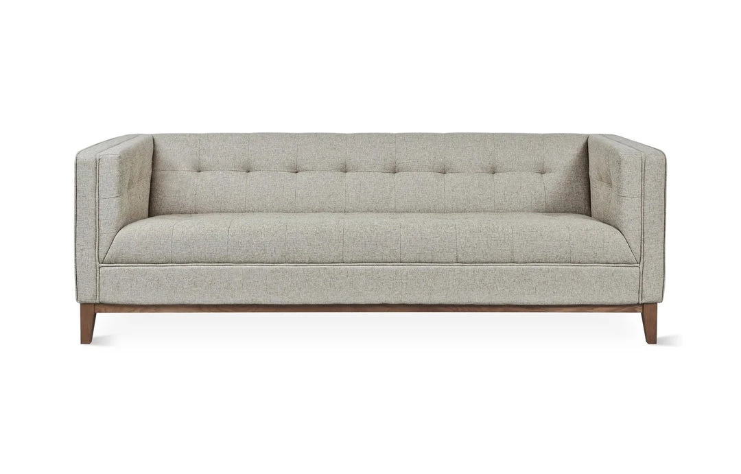 The Atwood Sofa is a tailored design which features a blind-tufted seat, back, and arms, along with piping details which lend to a clean, sophisticated look. The solid wood perimeter base is walnut finish with tapered legs. Made with FSC®-Certified wood in support of responsible forest management. The Atwood is also available as a chair or sectional.
