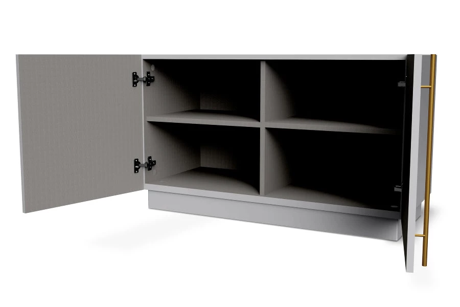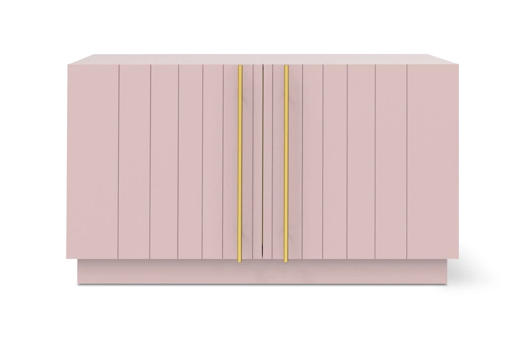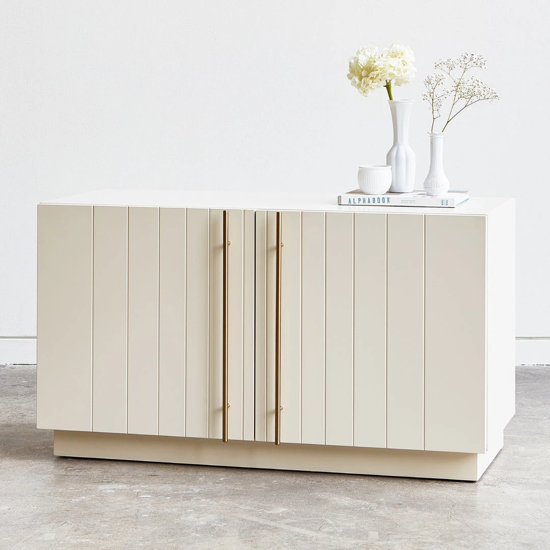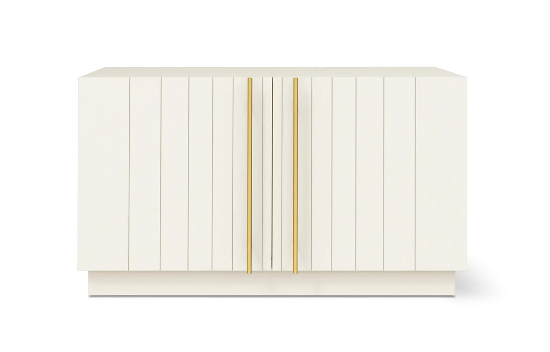 The Elora Cabinet combines the traditional aesthetic of classic beadboard cabinets with solid craftsmanship and muted, contemporary hues to create a distinctly modern design. Featuring a smooth satin finish, delicate brass-plated handles, and precision-cut doors on an elevated platform, the Elora Cabinet provides ample storage within a minimalist, contemporary form. Part of the Elora Storage Series, this Cabinet matches perfectly with the End Table and Media Stand.