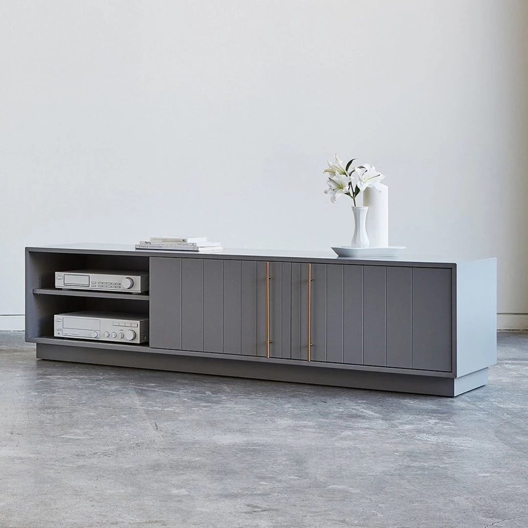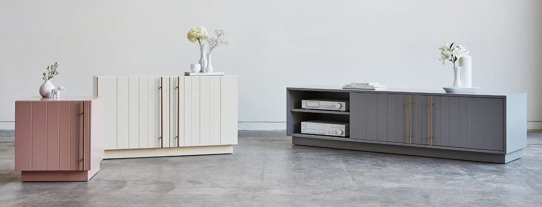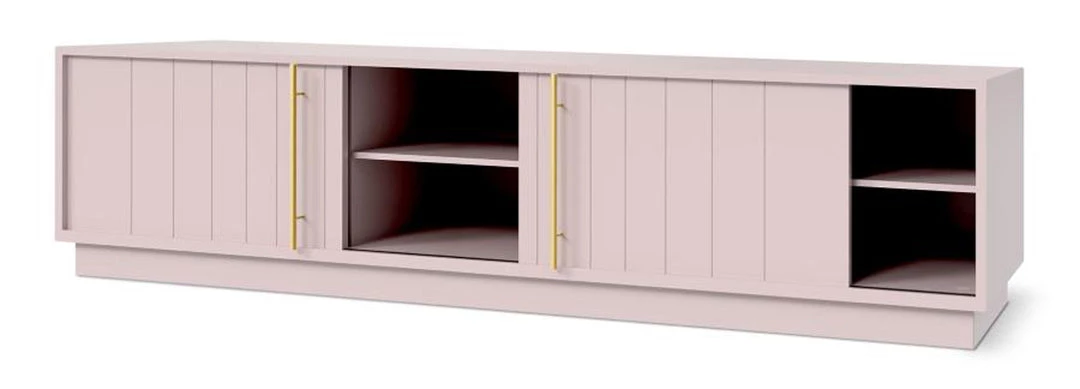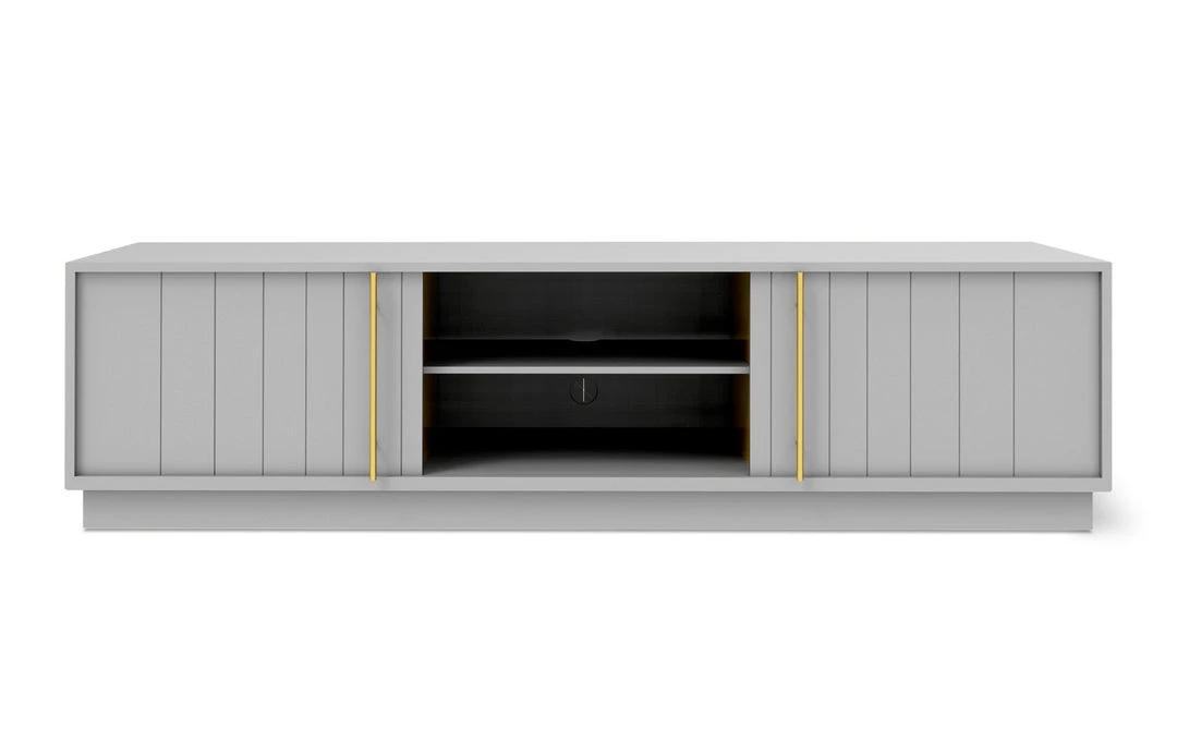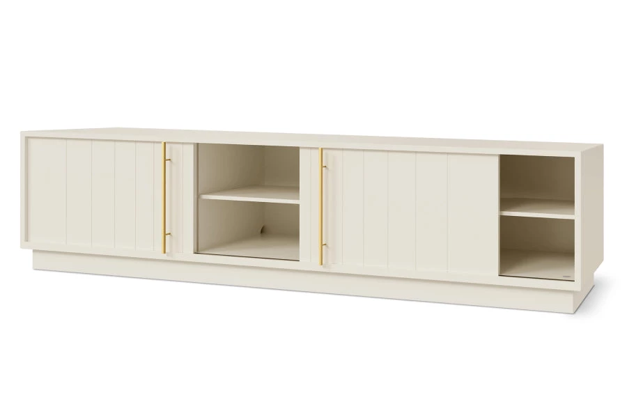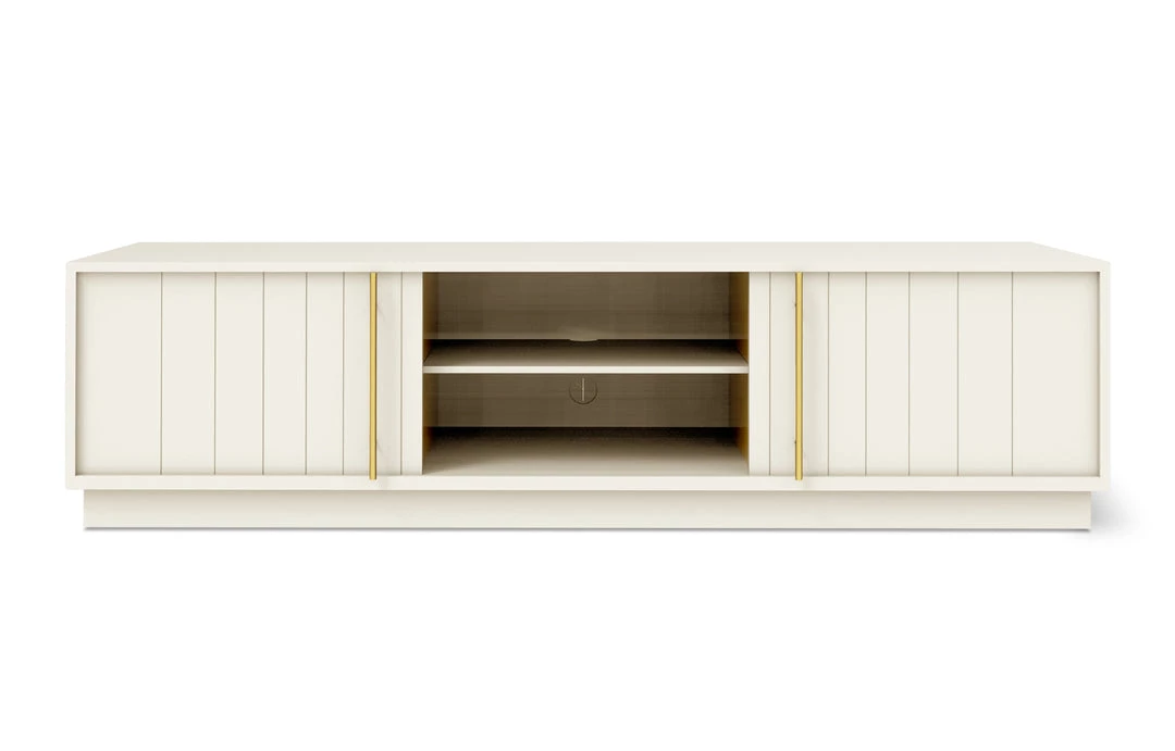 The Elora Media Stand combines the traditional aesthetic of classic beadboard cabinets with solid craftsmanship and muted, contemporary hues to create a distinctly modern design. Featuring a smooth satin finish, delicate brass-plated handles, and precision-cut doors on an elevated platform, the Elora Media Stand provides ample storage within a minimalist, contemporary form. Designed for Hi-Fi and media components, a back panel opening allows for concealed cable management. Part of the Elora Storage Series, this Media Stand matches perfectly with the End Table and Cabinet.
