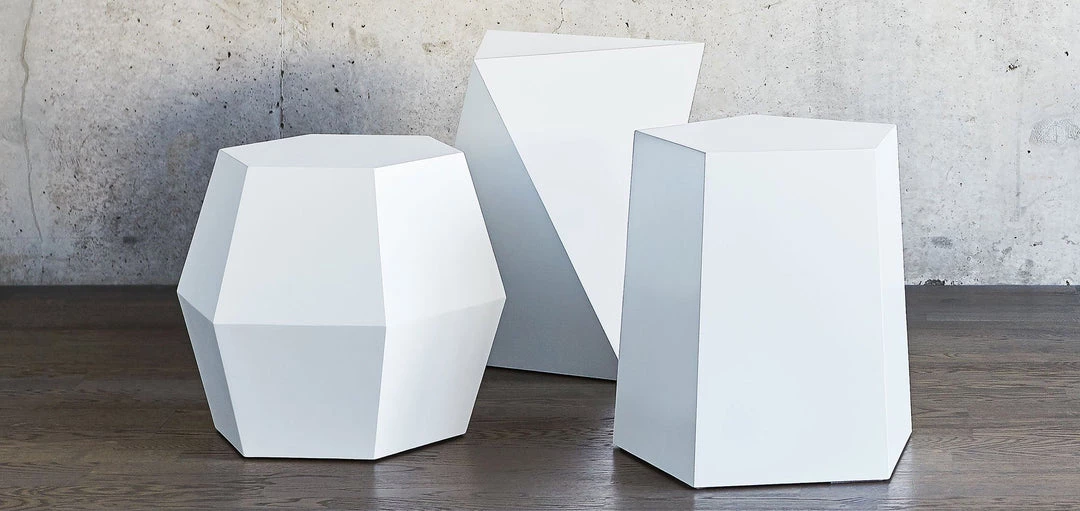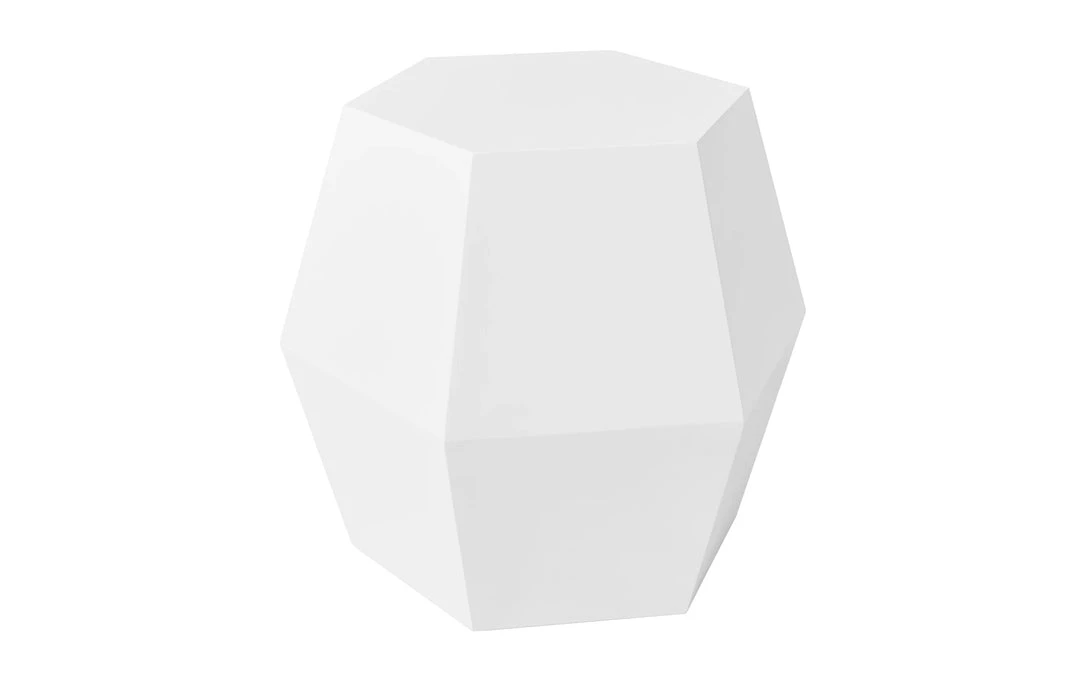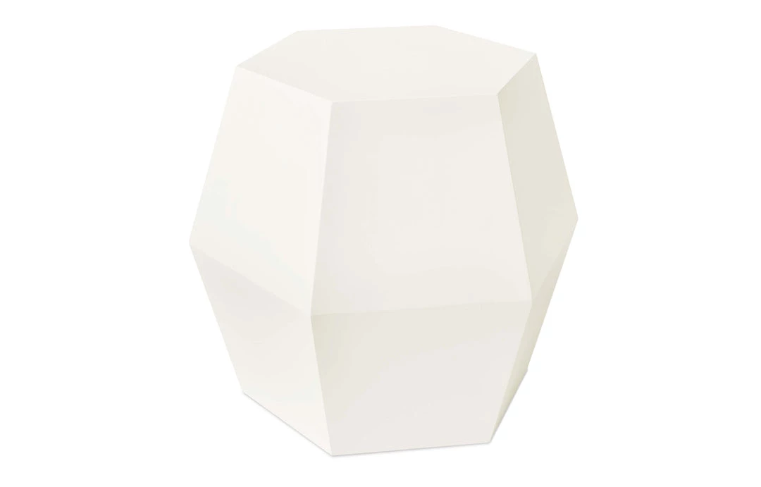 Inspired by the shapes of naturally occurring crystals, the Facet-14 End Table is a sculptural design that functions beautifully as either an accent table or as secondary seating. Precision-cut panels are shaped into a unique geometric design, with faces that subtly reflect light to create an attractive, minimalist form. The design works as a standalone piece or in a grouping with other accents from the Facet Series.