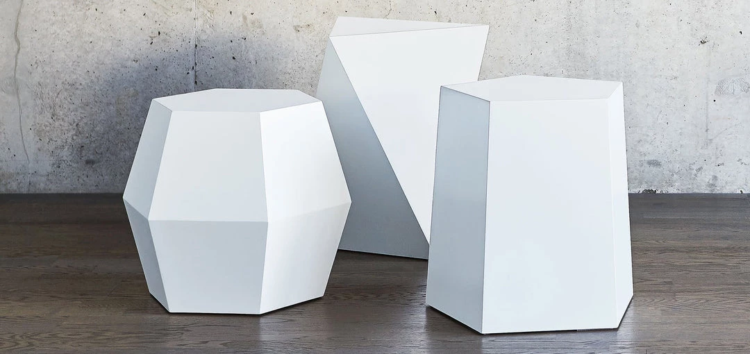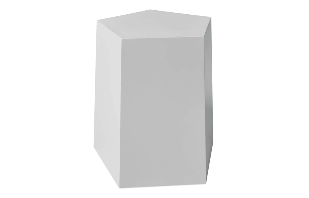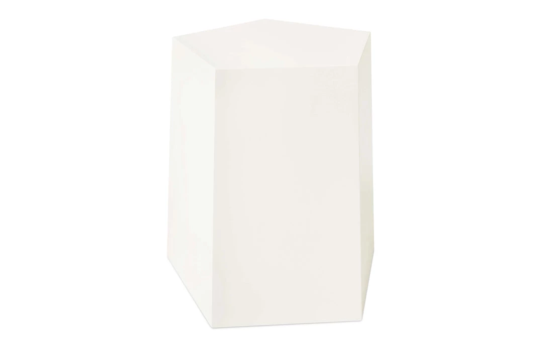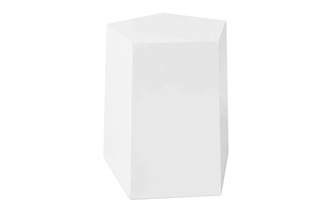 Inspired by the shapes of naturally occurring crystals, the Facet-7 End Table is a sculptural design that functions beautifully as either an accent table or as secondary seating. Precision-cut panels are shaped into a unique geometric design, with faces that subtly reflect light to create an attractive, minimalist form. The design works as a standalone piece or in a grouping with other accents from the Facet Series.