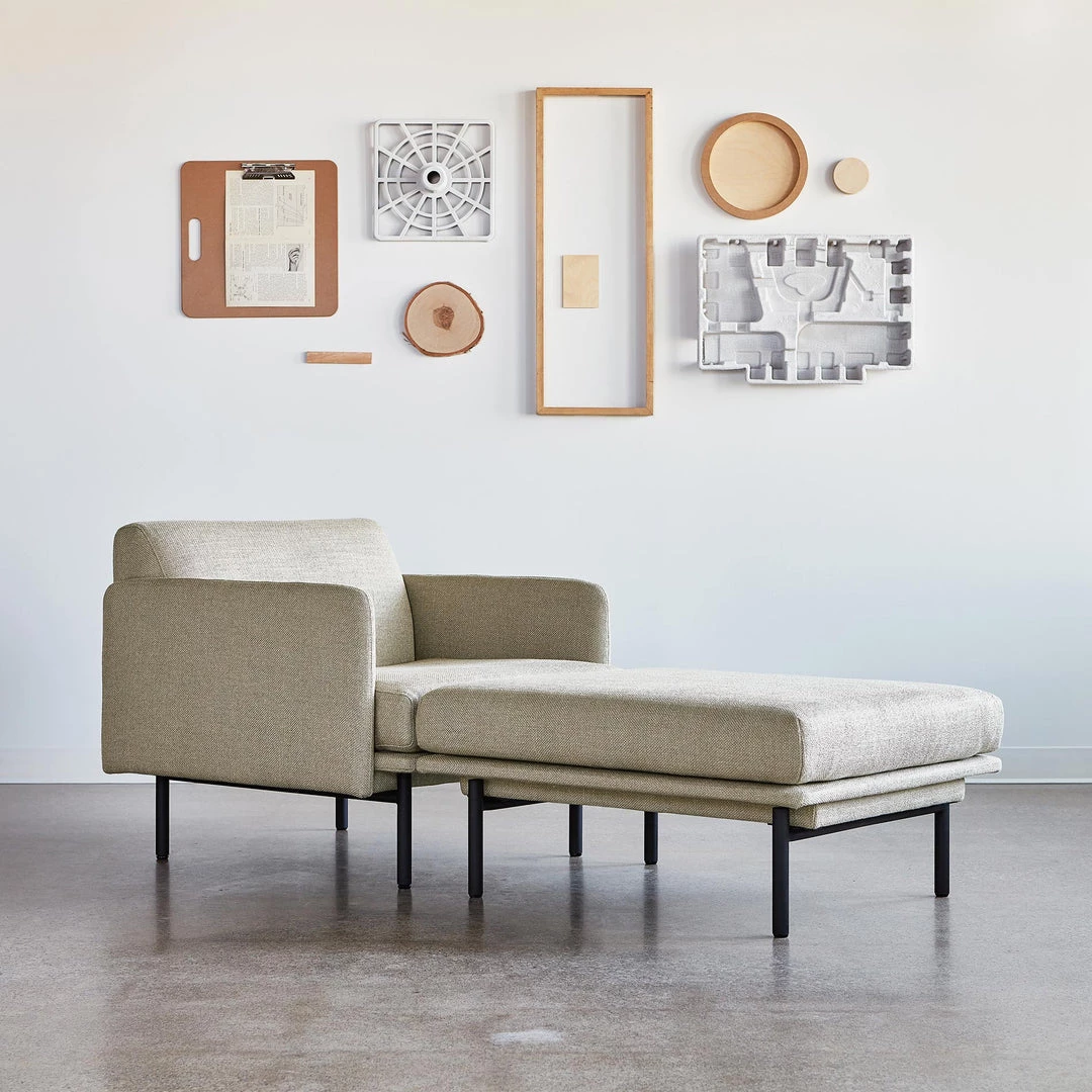 The Foundry Upholstery Series showcases tailored, elegant minimalism with details that balance fashion and function to suit any residential or commercial setting. Inspired by elements of classic Scandinavian design, the Foundry Ottoman offers ample sophistication as a standalone piece, showcasing striking lines, and a cushion that seems to float above elevated, cylindrical steel legs. The frame is constructed with kiln-dried 100% FSC®-Certified hardwood in support of responsible forest management.