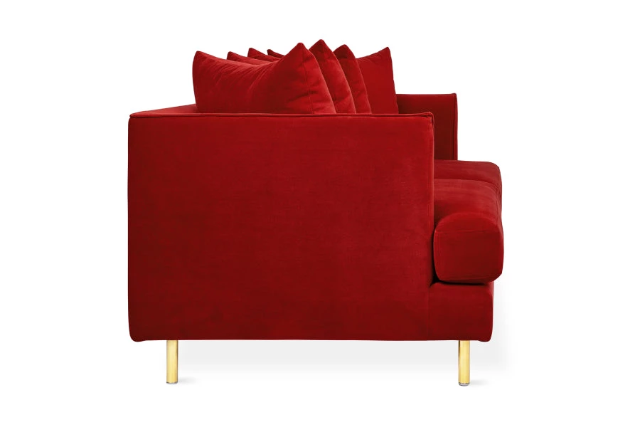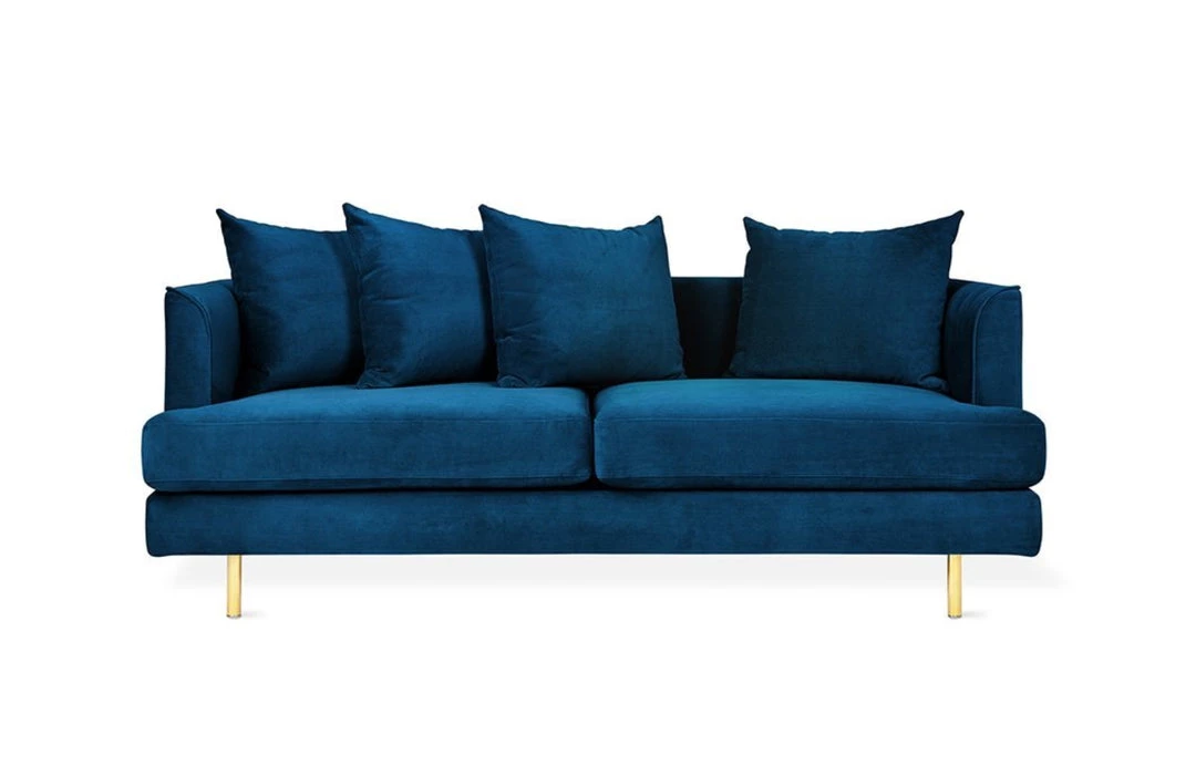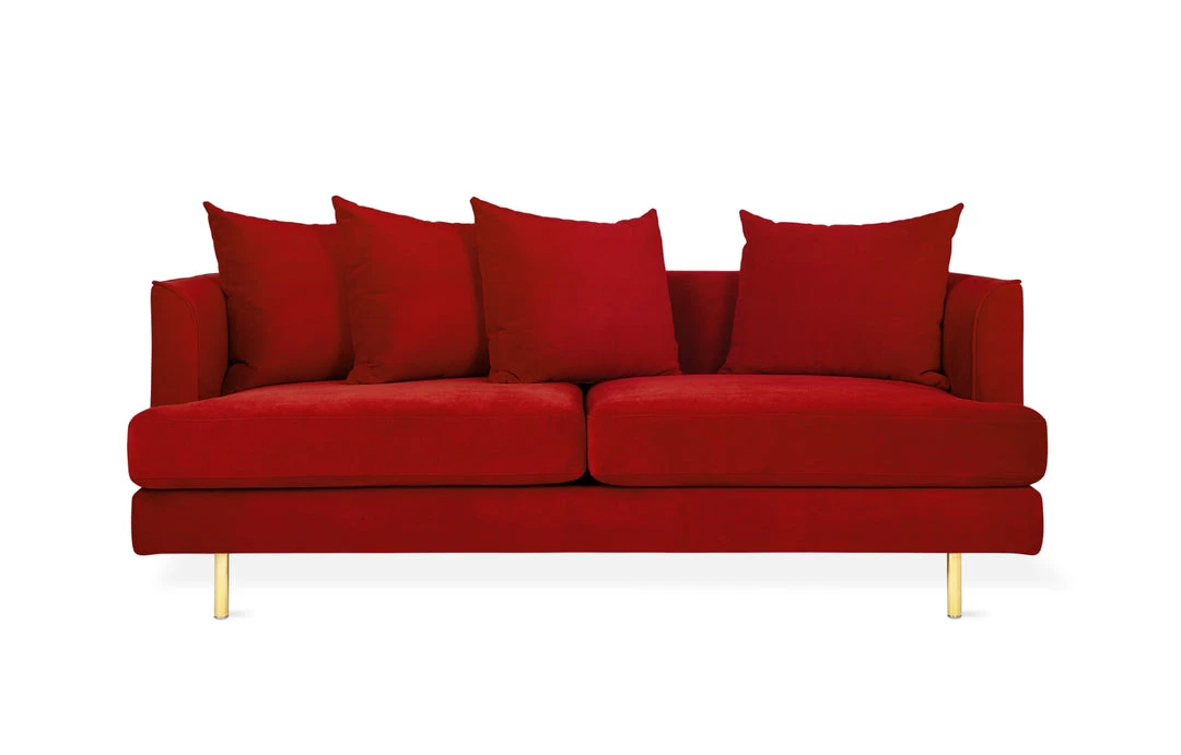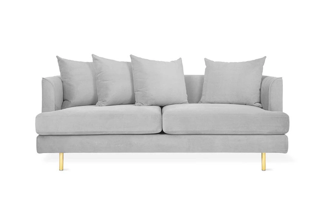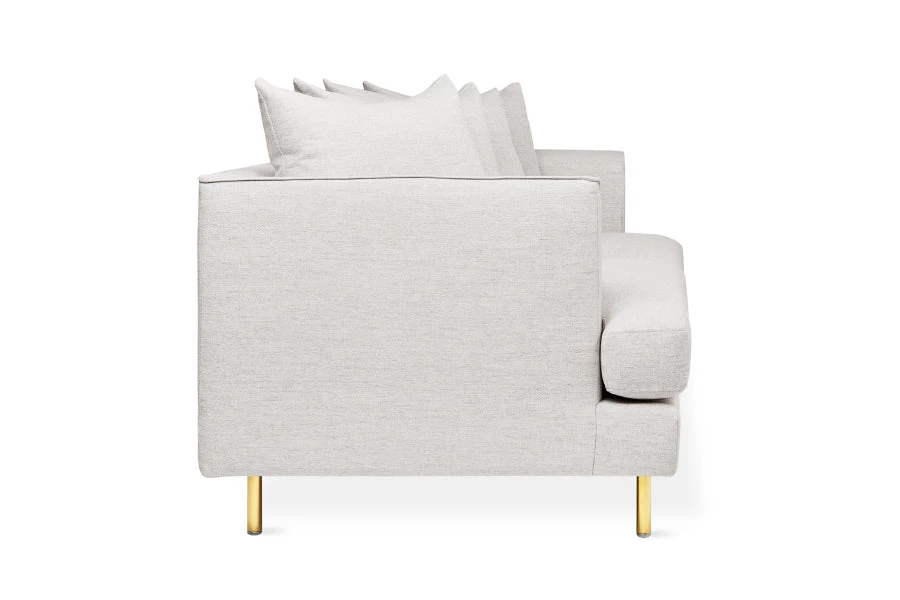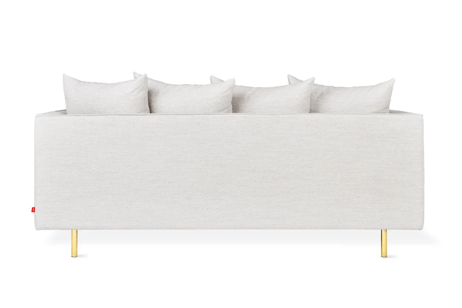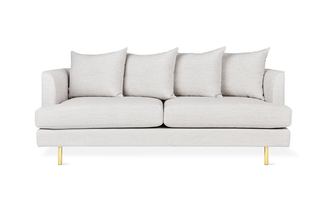 The Margot Loft Sofa epitomizes modern elegance with graceful arms, French-seam detailing, and loose, luxurious cushions that give a look which is both timeless and contemporary. A smaller version of the popular Margot Sofa, this design captures all the refined style of the full-scale sofa in a more compact 72” length. Every sofa includes two sets of cylindrical steel legs, allowing you to choose between a brass or black finish to suit your style. The back cushions use a unique, eco-friendly synthetic down, derived from recycled PET plastic. The frame is constructed with kiln-dried 100% FSC-Certified hardwood. Also available as an 83” sofa and chair.