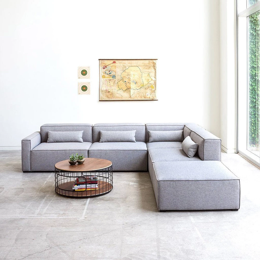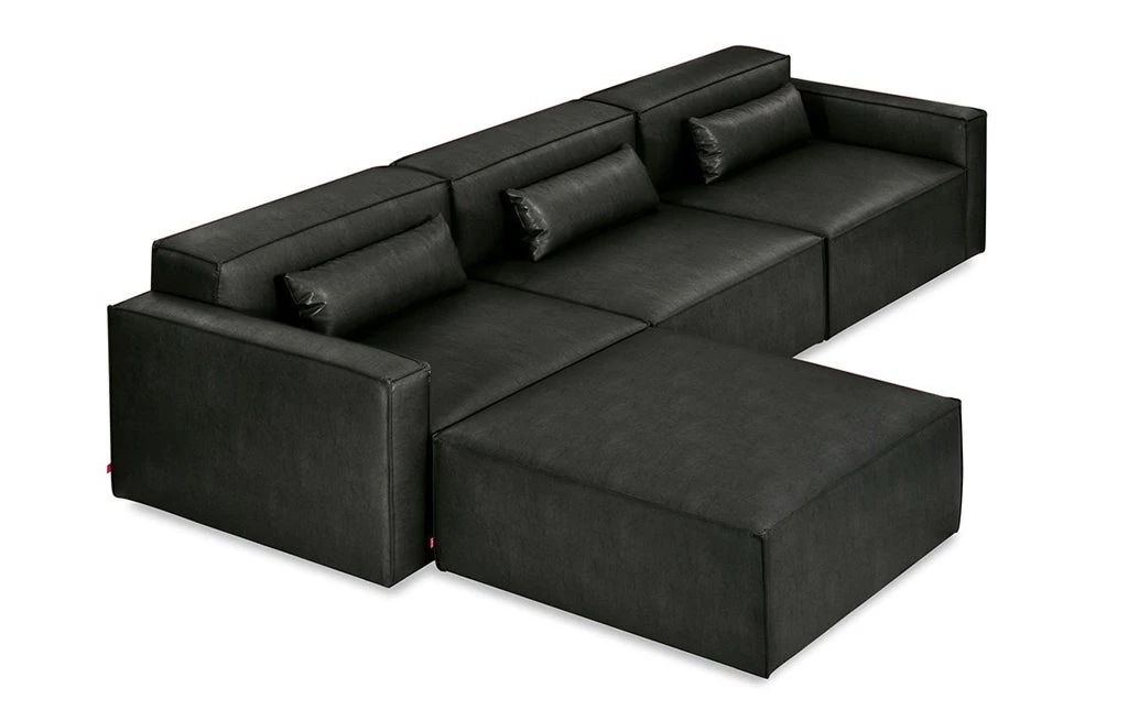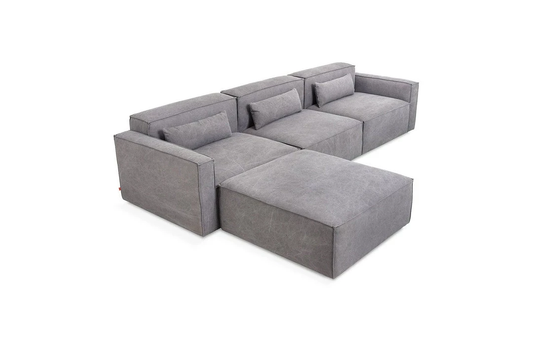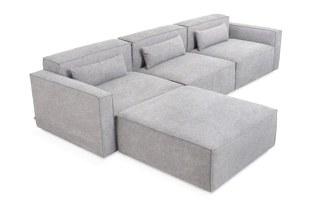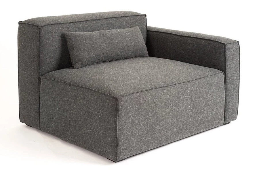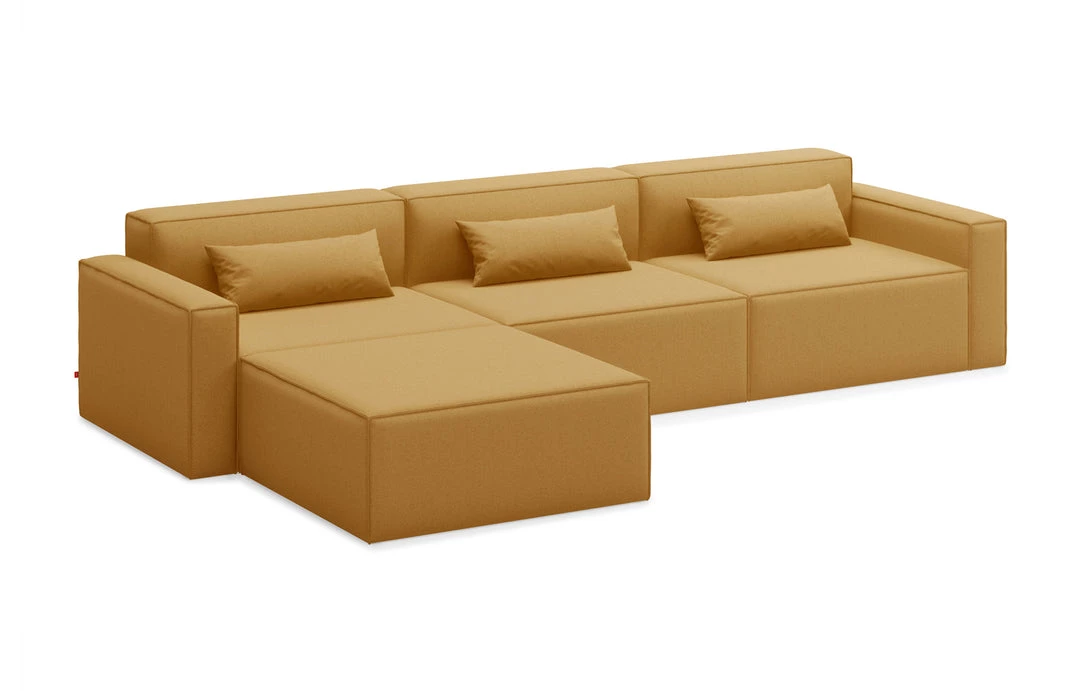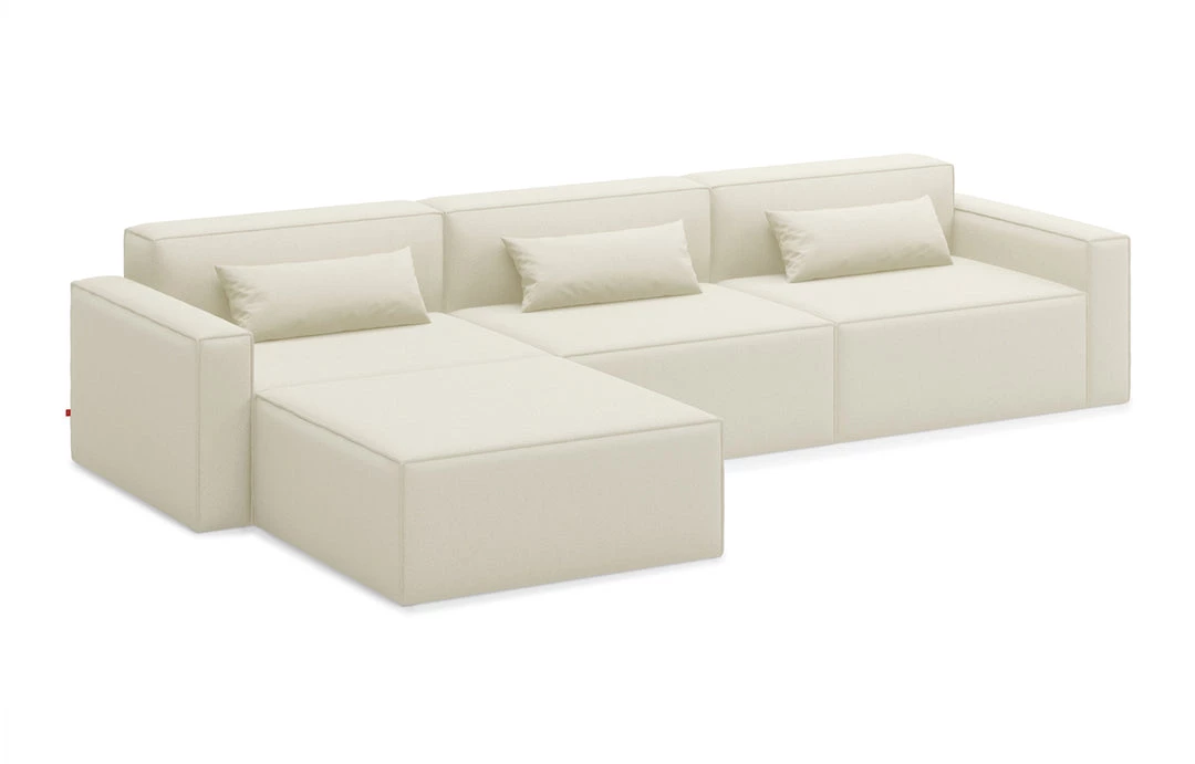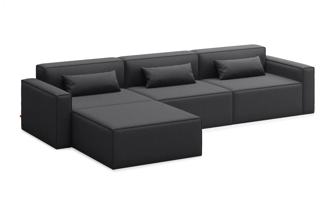The Mix Modular Collection lets you mix and match components and fabrics to build a custom sectional, sofa or chaise to perfectly suit your space. The design uses 5 basic components (left arm unit, right arm unit, armless unit, corner unit, and ottoman) which can be added and combined to create an unlimited number of upholstery configurations. Choose matching fabrics or mix things up to make it your own. Components can be easily reconfigured or added later to adapt to changing needs. Move an ottoman from the left to the right side of a sectional to change the layout of your space. Build a condo-sized sectional knowing that you can add more components down the road if needs change. The tight seat and back give the design a clean-lined, contemporary look, and each component has French seams to subtly soften the edges. Includes matching bolster cushions for added style and comfort. Constructed with kiln-dried 100% FSC®-Certified hardwood in support of responsible forest management.