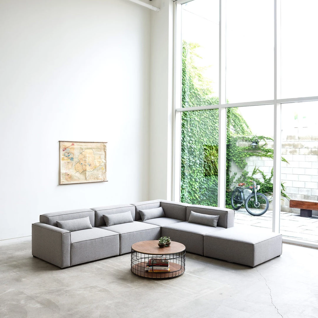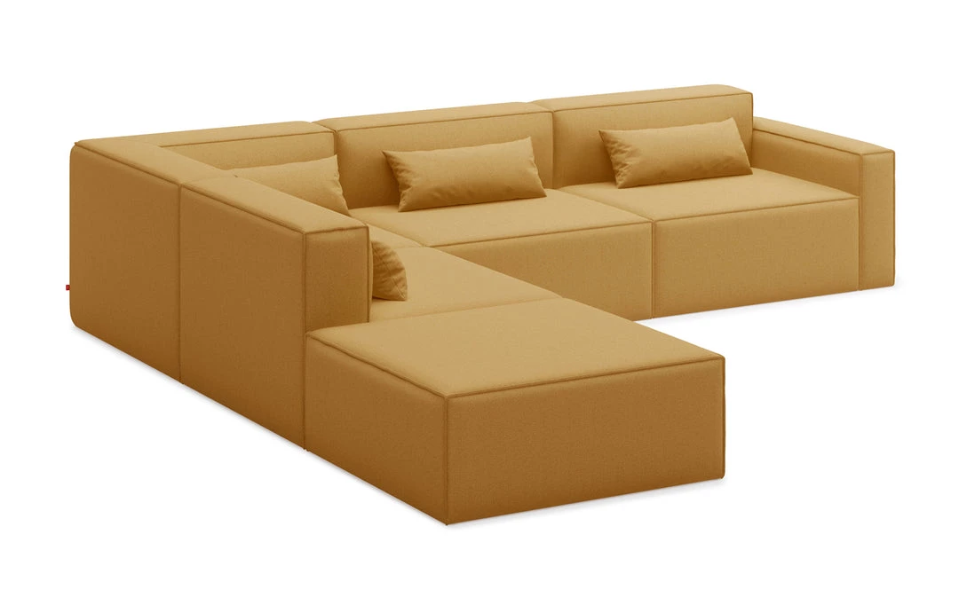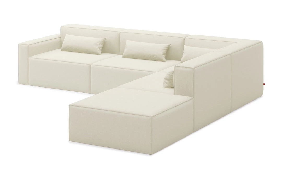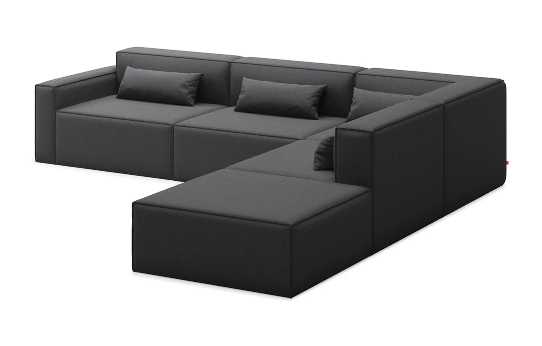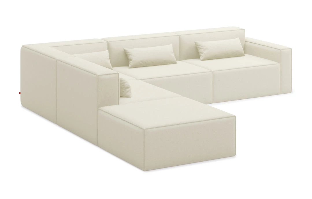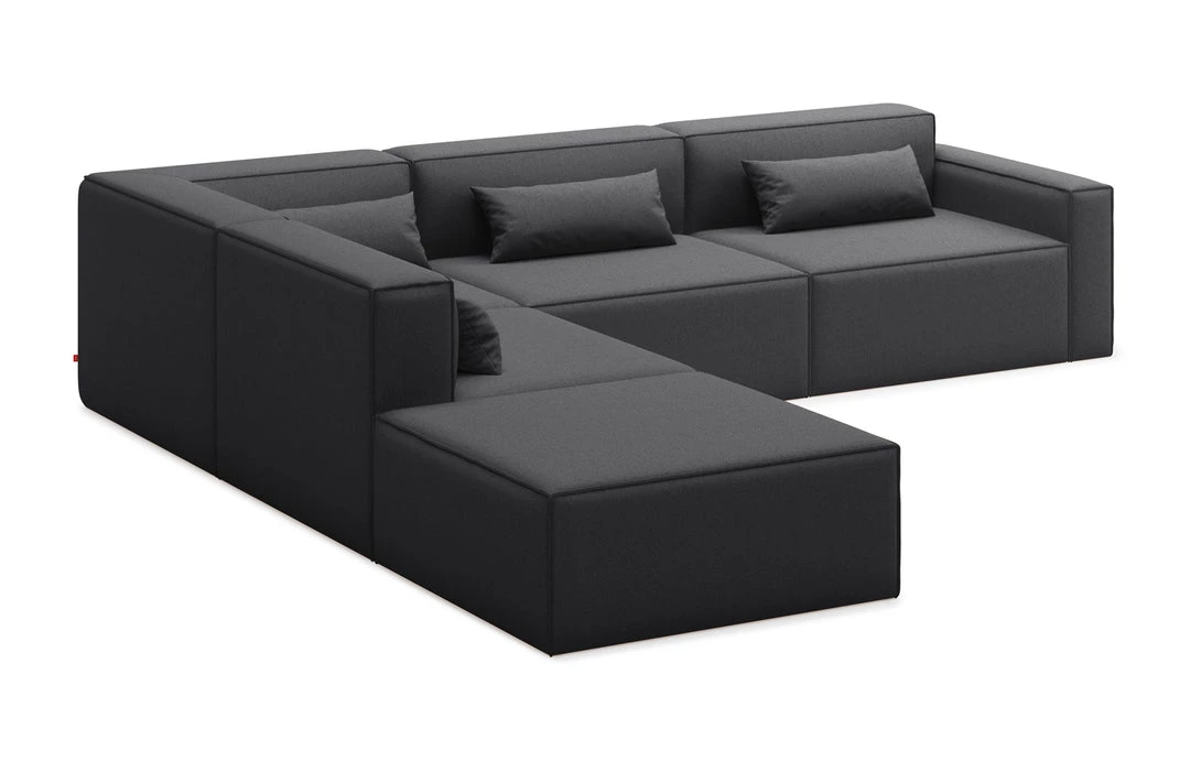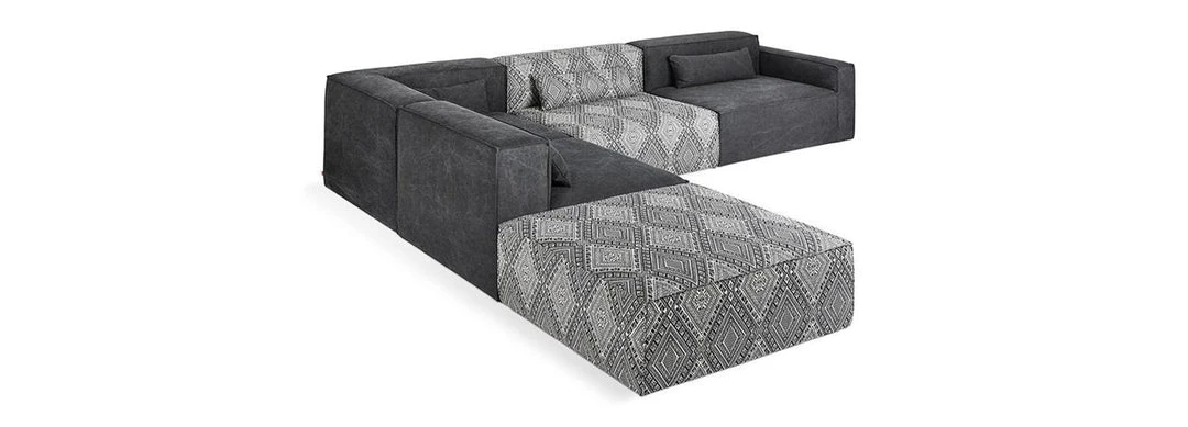 The Mix Modular Collection lets you mix and match components and fabrics to build a custom sectional, sofa or chaise to perfectly suit your space. The design uses 5 basic components (left arm unit, right arm unit, armless unit, corner unit, and ottoman) which can be added and combined to create an unlimited number of upholstery configurations. Choose matching fabrics or mix things up to make it your own. Components can be easily reconfigured or added later to adapt to changing needs. Move an ottoman from the left to the right side of a sectional to change the layout of your space. Build a condo-sized sectional knowing that you can add more components down the road if needs change. The tight seat and back give the design a clean-lined, contemporary look, and each component has French seams to subtly soften the edges. Includes matching bolster cushions for added style and comfort. Constructed with kiln-dried 100% FSC®-Certified hardwood in support of responsible forest management.