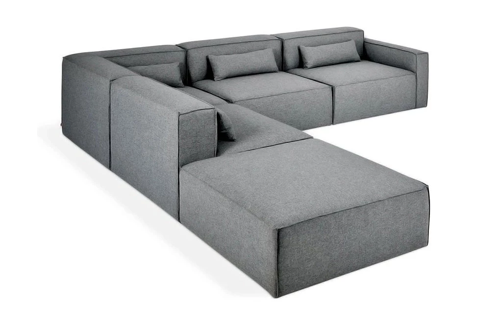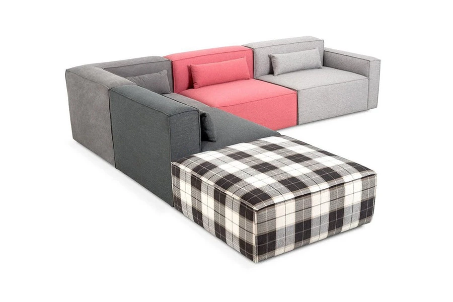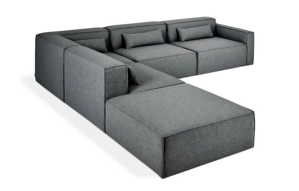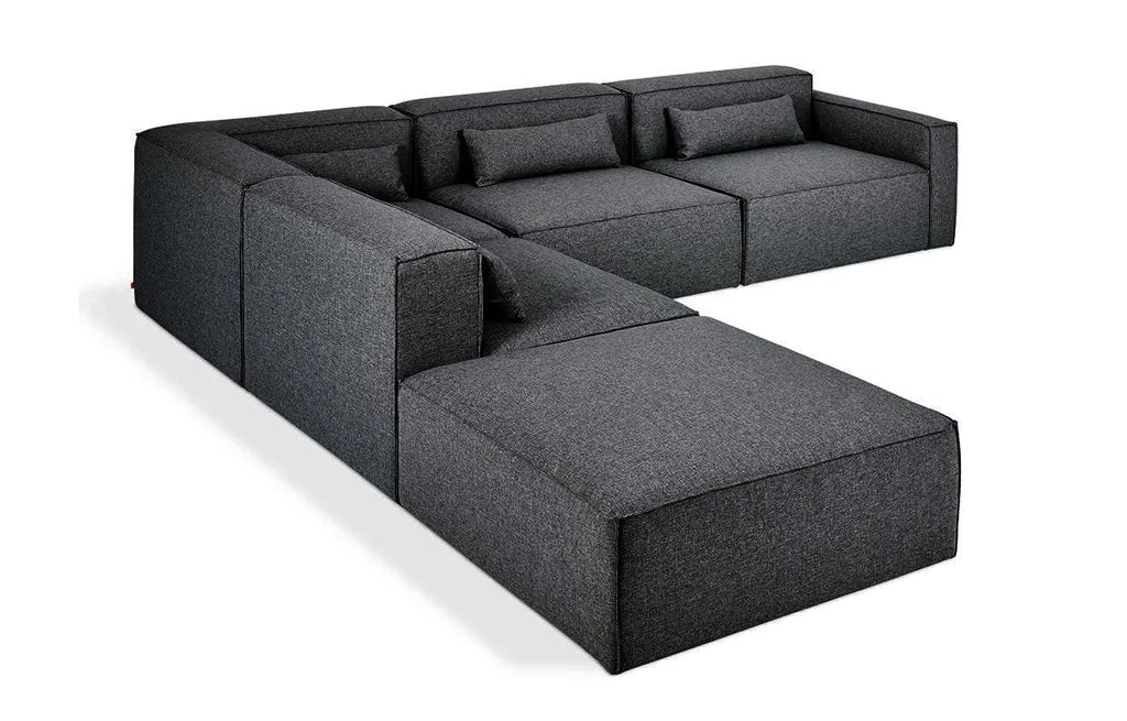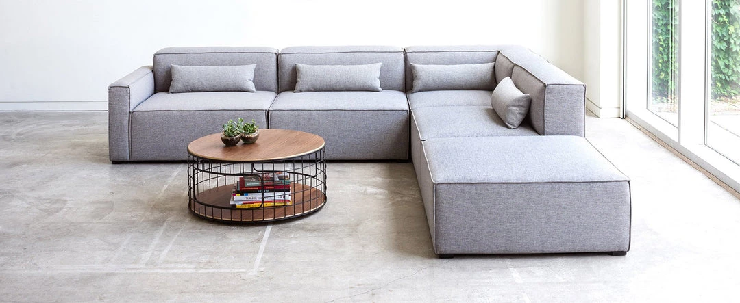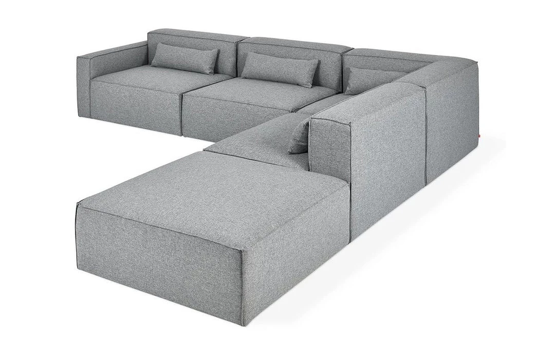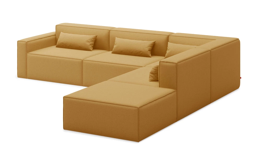 The Mix Modular Collection lets you mix and match components and fabrics to build a custom sectional, sofa or chaise to perfectly suit your space. The design uses 5 basic components (left arm unit, right arm unit, armless unit, corner unit, and ottoman) which can be added and combined to create an unlimited number of upholstery configurations. Choose matching fabrics or mix things up to make it your own. Components can be easily reconfigured or added later to adapt to changing needs. Move an ottoman from the left to the right side of a sectional to change the layout of your space. Build a condo-sized sectional knowing that you can add more components down the road if needs change. The tight seat and back give the design a clean-lined, contemporary look, and each component has French seams to subtly soften the edges. Includes matching bolster cushions for added style and comfort. Constructed with kiln-dried 100% FSC®-Certified hardwood in support of responsible forest management.