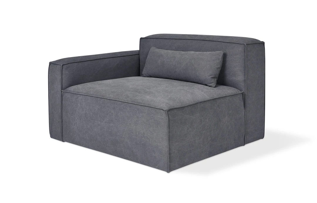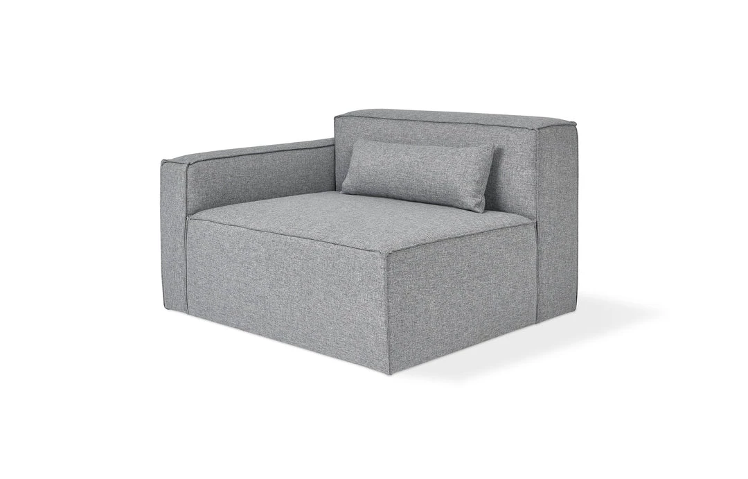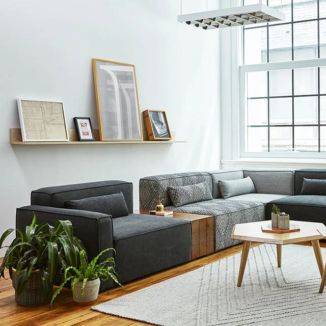The Mix Modular Collection lets you mix and match components and fabrics to build a custom sectional, sofa or chaise to perfectly suit your space. The design uses 5 basic components (left arm unit, right arm unit, armless unit, corner unit, and ottoman) which can be added and combined to create an unlimited number of upholstery configurations. Choose matching fabrics or mix things up to make it your own. Components can be easily reconfigured or added later to adapt to changing needs. Move an ottoman from the left to the right side of a sectional to change the layout of your space. Build a condo-sized sectional knowing that you can add more components down the road if needs change. The tight seat and back give the design a clean-lined, contemporary look, and each component has French seams to subtly soften the edges. Includes matching bolster cushions for added style and comfort. Constructed with kiln-dried 100% FSC®-Certified hardwood in support of responsible forest management.
