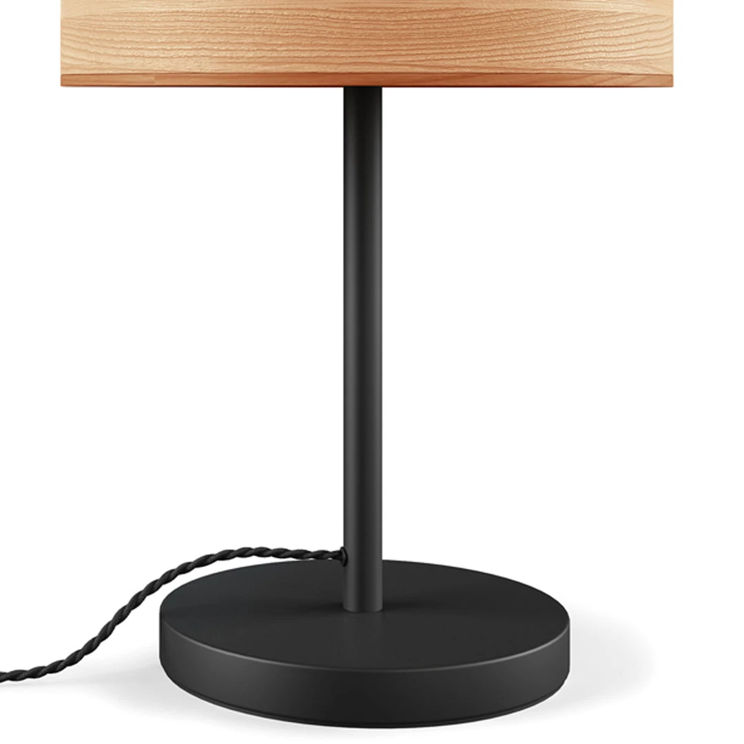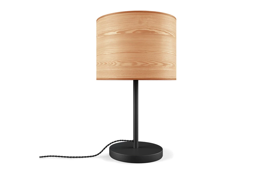 A love letter to the beauty of nature, the Milton lighting collection focuses on the unique intricacy of woodgrain to create an illuminating drum design. Featuring a shade made from natural wood veneer, the Milton Table Lamp is the finishing touch your room needs, enlivening a dark corner or unadorned side table with modern rustic appeal. The sleek black steel base features an accessible hand switch and black fabric electrical cord for an added textural element.
