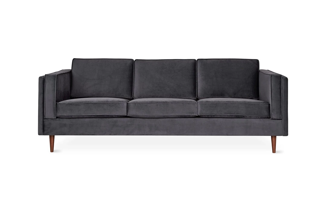 The Adelaide Sofa is a classic club sofa frame that harkens back to Mid-century archetypes. Structured side cushions lend a vintage look, and provide added comfort. The solid, tapered-wood legs can be easily removed and reattached, allowing this sofa to fit through tight spaces. The sofa frame and legs are FSC®-Certified wood, in support of responsible forest management.
