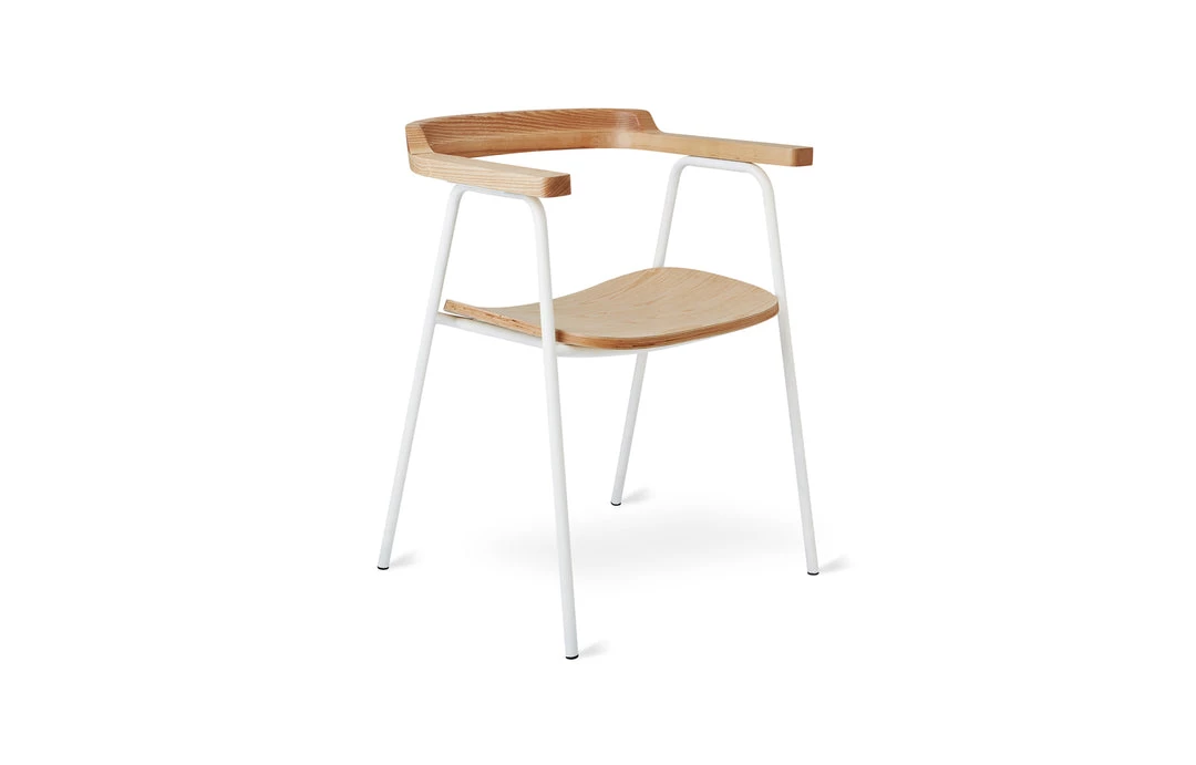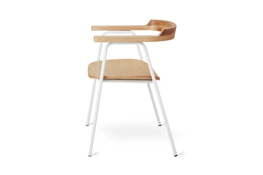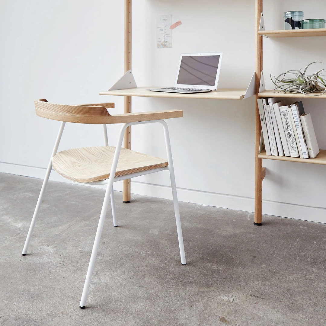 The Principal Chair brings an element of sculptural simplicity to any space. The solid wood back, bent plywood seat and tubular steel frame create a natural harmony of texture and form that highlight the chair’s design and craftsmanship. Principal’s clean lines and slender contours are a perfect match for the Branch Shelving System desk unit.