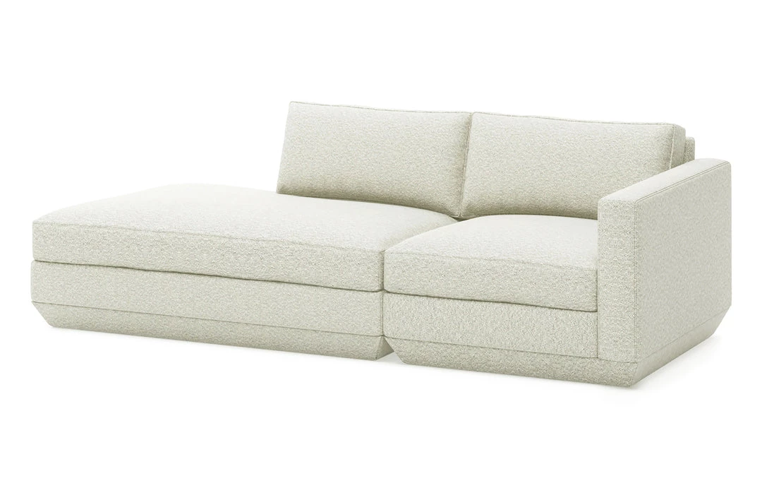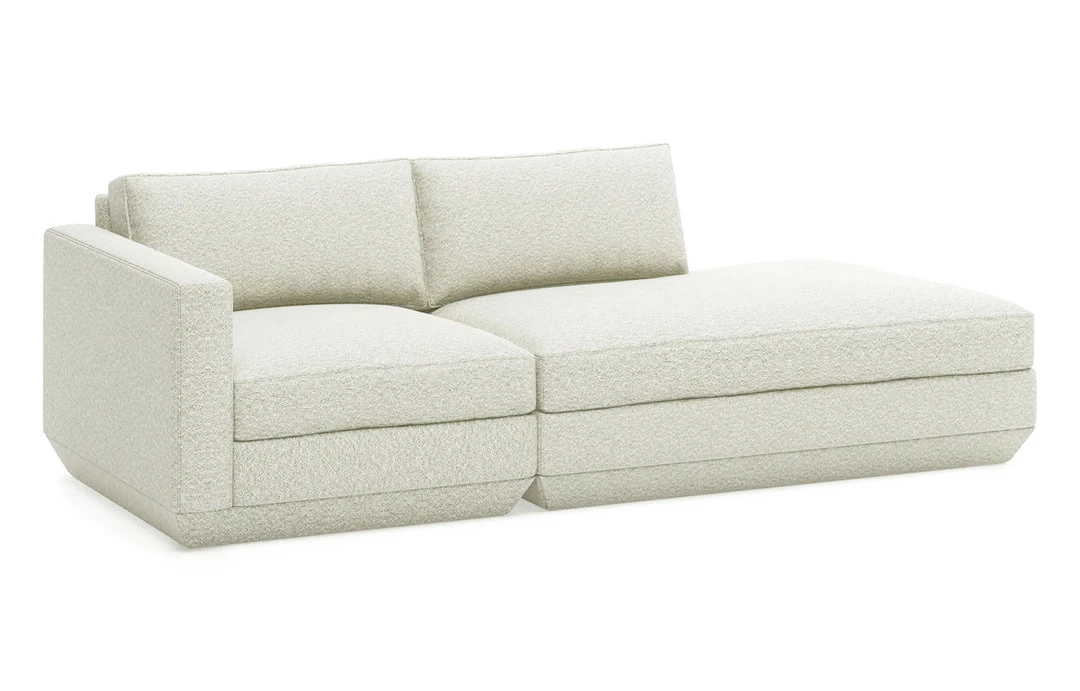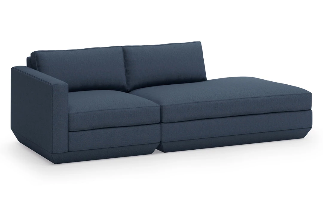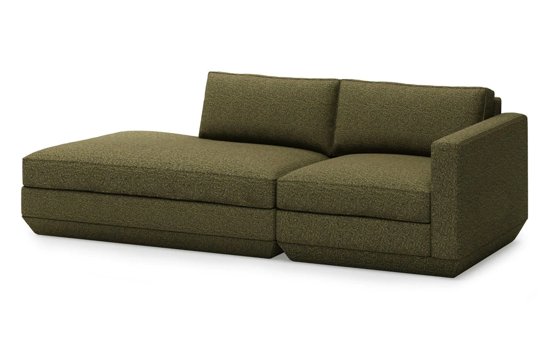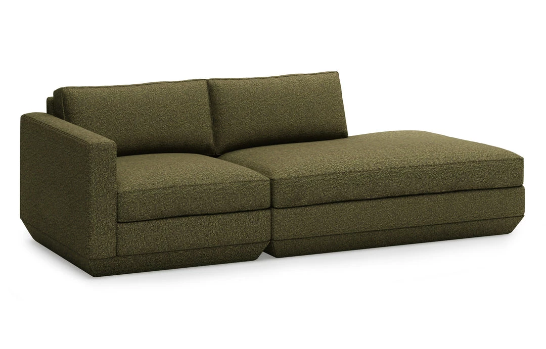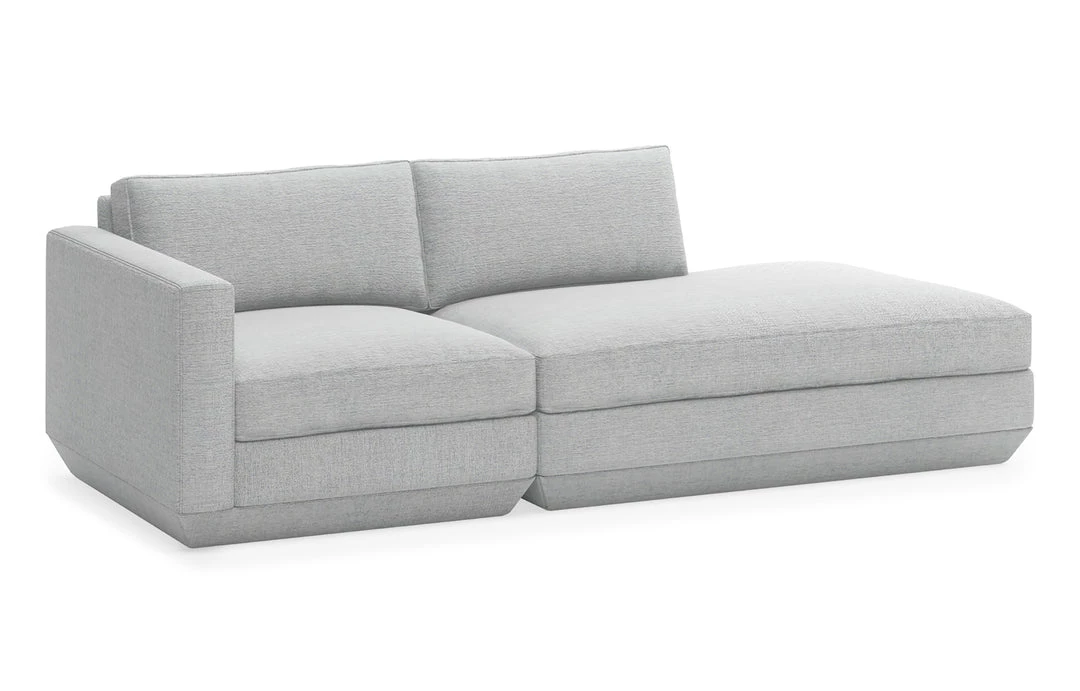 The Podium Modular Collection is an adaptable seating system that brings modern elegance and luxurious comfort to any space. The Podium features seven core components (Right Arm, Left Arm, Armless, Corner, Ottoman, Left Lounge and Right Lounge) that can be arranged in unlimited configurations to suit any vision or layout. Components can then be easily reconfigured or added later to adapt to your evolving lifestyle. Each component showcases a relaxed silhouette inspired by 1970’s Modernism: a low and deep sit created by plush seat and back cushions (filled with Eco-friendly synthetic down derived from recycled water bottles), and an attractive, subtly angled, chamfered base. The frames are constructed with kiln-dried 100% FSC®-Certified hardwood in support of responsible forest management.