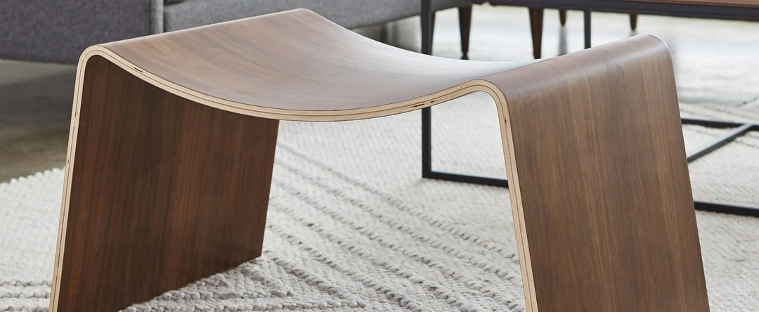 The Wave Stool’s smooth, flowing lines are an ode to the waters of Canada’s countless lakes and rivers. The cut edge reveals layers of exposed-ply, and the stool’s wide curve allows for a generous and accommodating seating area. Small-scaled and extremely versatile, the Wave Stool is perfect in living rooms, bedrooms or front hallways.