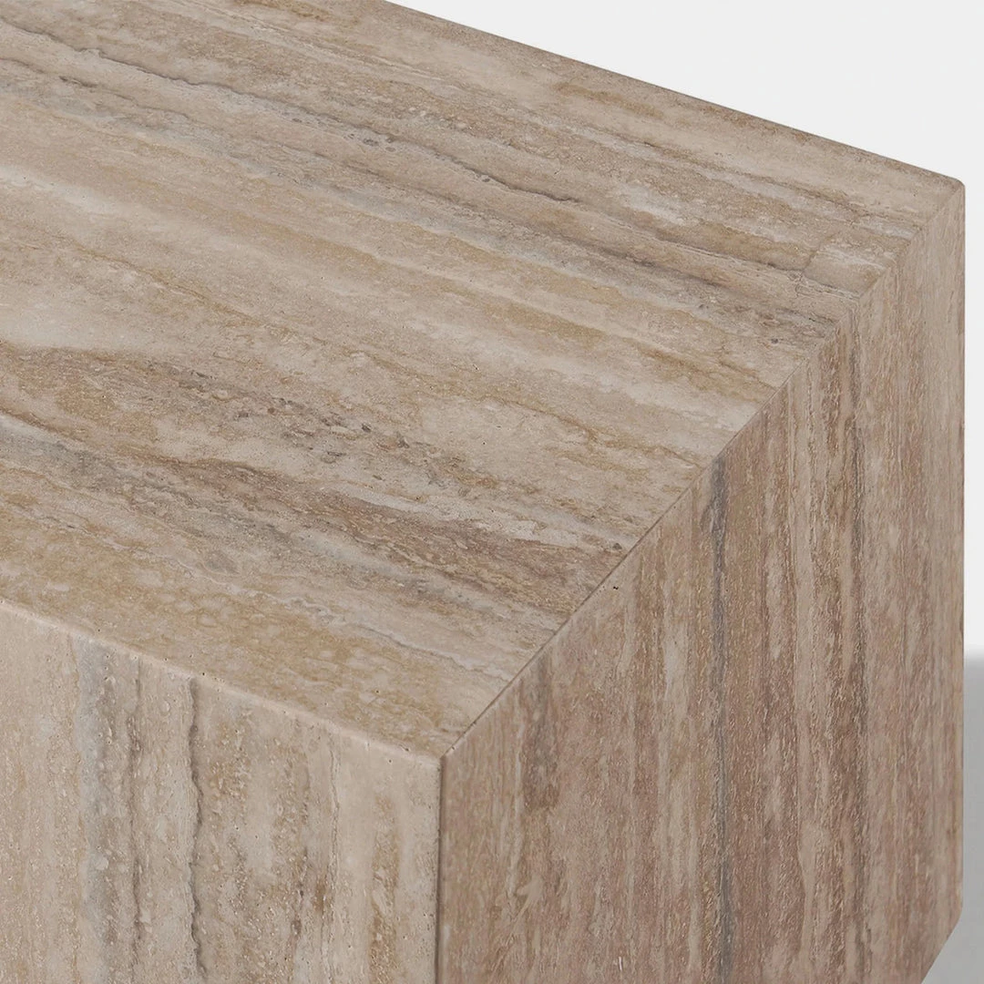 Our Florence collection follows simple rules of form to highlight travertine stone as its star material. The Florence Square or round Side Table is the perfect complement for your seating set — featuring an aluminum sub–structure on a plinth base supporting a square or round slab of hand–selected travertine stone from Italy, with unique patterns naturally formed over time. A beautiful conversation piece that’s built to last, this versatile table is designed to be used both indoors and out.
