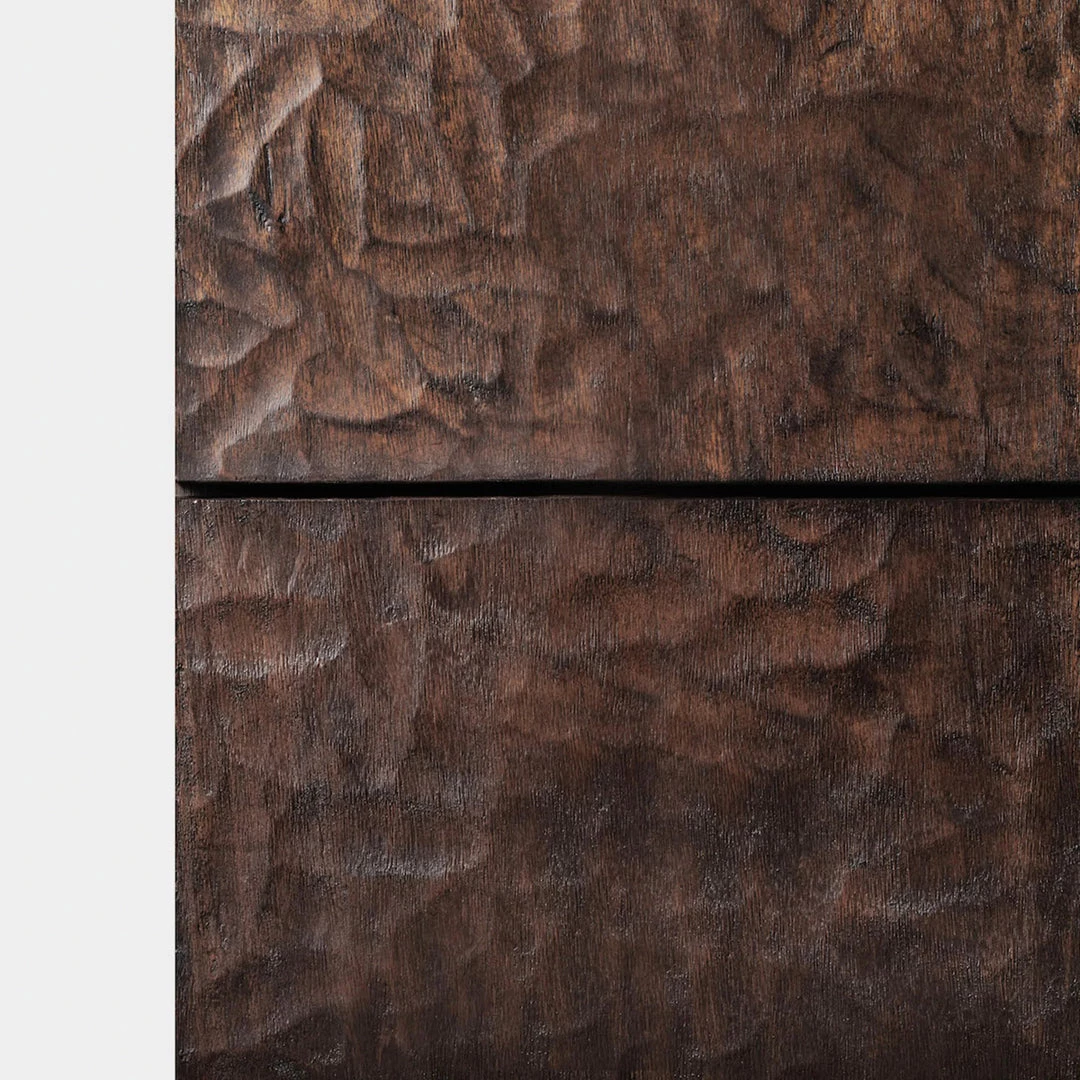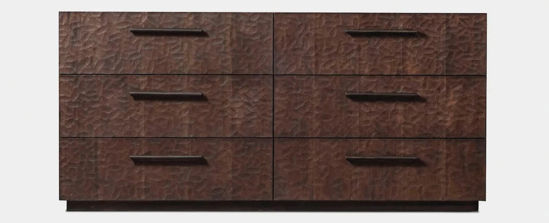 Our Native collection showcases the rustic finish of mahogany to create understated conversation pieces. The Native Tall 5 Drawer Dresser or 6 Drawer Dresser is simple in form — featuring both smooth and carved wood for rustic texture, with five or six stacked drawers on a plinth base with Harbour–crafted cast brass hardware. Stained a warm shade of brown, this handcrafted piece stands out in any space.