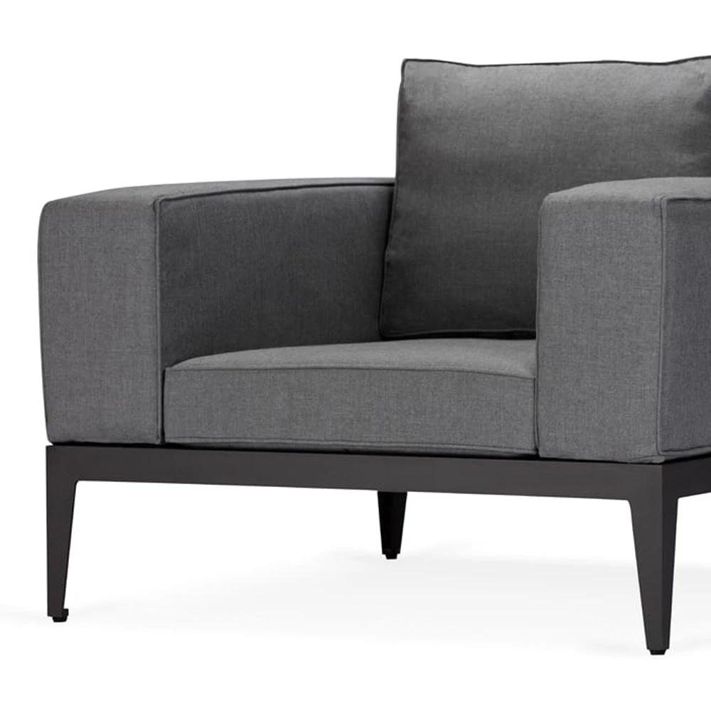 Add an elegant touch to your outdoor ensemble or den seating group with this understated Balmoral armchair. This arm chair’s versatile appeal and contemporary styling elevates any space. Its streamlined silhouette blends effortlessly into any casual aesthetic, while its unique design adds visual appeal to your favorite seating group.