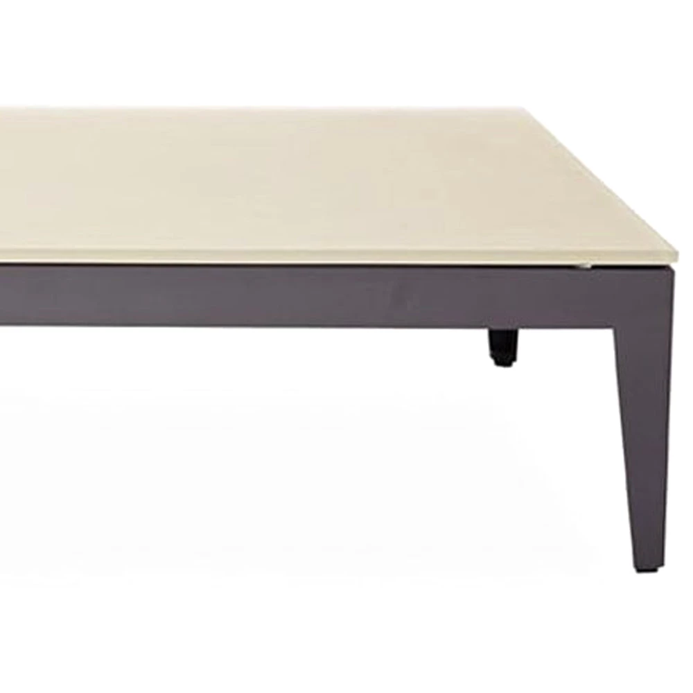 Artfully crafted of aluminum powder-coated frame, this Balmoral Coffee Table showcases stately features giving it an elegant look. Its table top surface gives it a clean-lined silhouette and a versatile solid finish. This coffee table is sure to give your outdoor space a touch of sophistication.