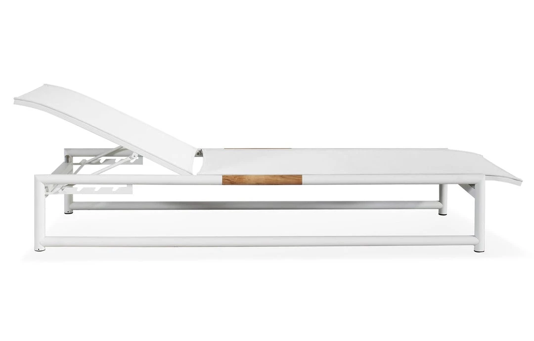The Breeze Sun Lounge lets you enjoy the sunshine in style. It is crafted from a gorgeous mix of materials, the powder coated aluminum frame is slender but sturdy, providing the ultimate support. Two bars of teak wood are embedded into the sides of the frame, adding character to the Sunlounge and creating a unique and eye-catching look that is high impact. The French Batyline fabric on the seat and adjustable back are designed for extra breathability and comfort, so you can stay cool and dry whilst enjoying the great outdoors.