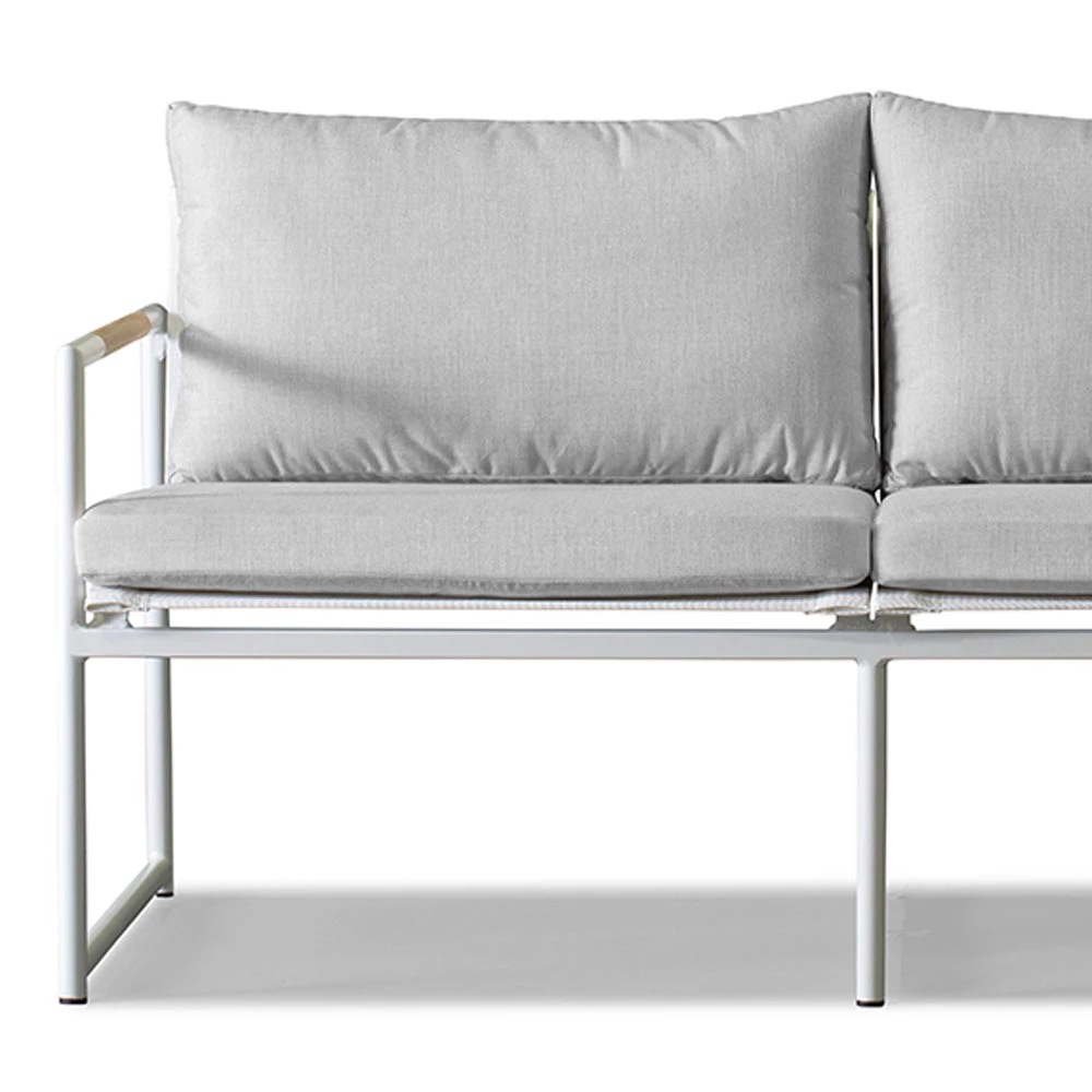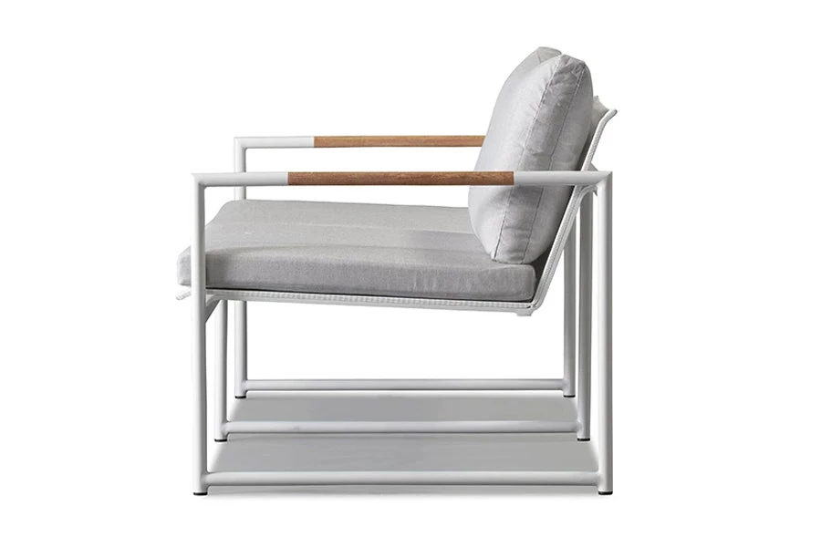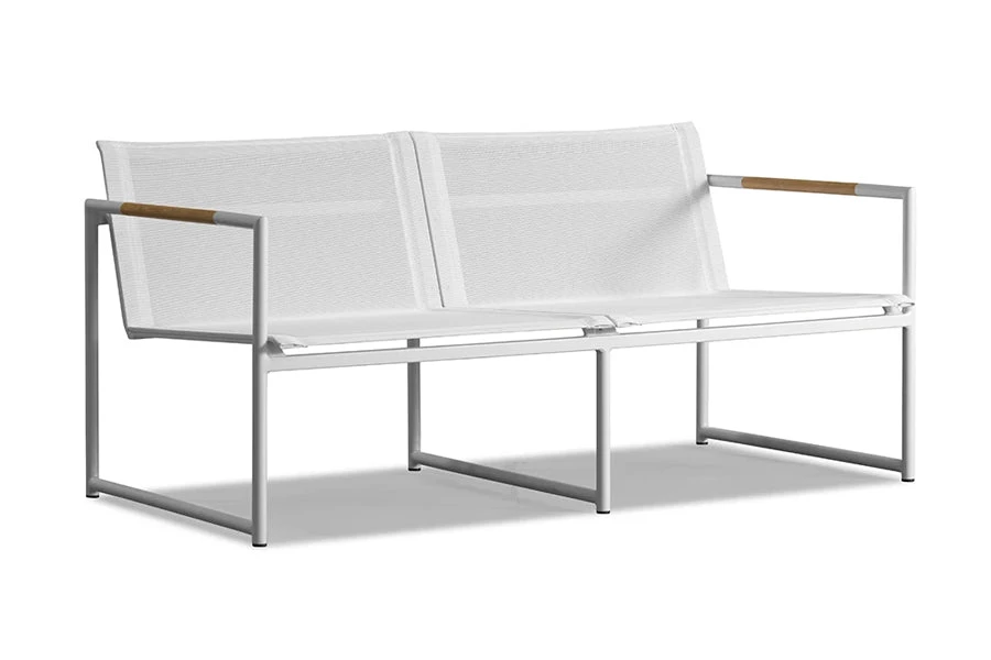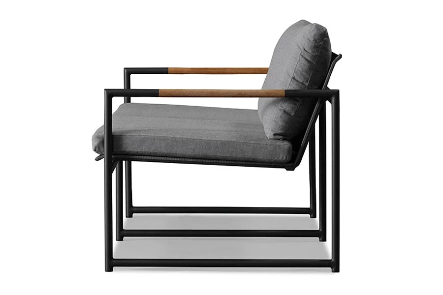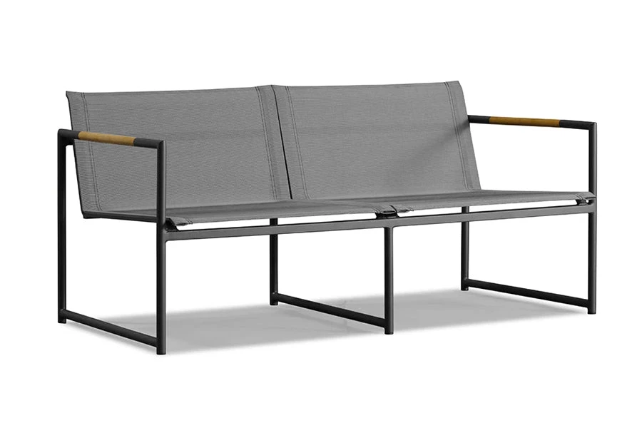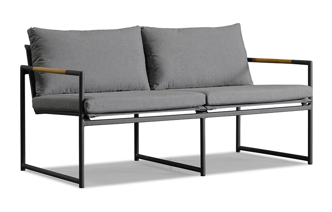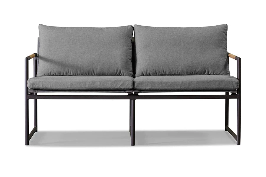 The Breeze 2 Seat Lounge is a stylish as well as exceptionally comfortable seat that is built to the finest quality with a strong base and modern design principles. The cushion is slender, giving the lounge a sophisticated and elegant look, but still, retains a plush comfort as it is filled with a dense foam. It is covered in easy to care for and weather resistant Sunbrella fabric which has been engineered for a long life outdoors. It sits upon a slim powder coated aluminum frame that is sturdy and rust-proof. A-grade plantation teak is embedded into this frame, creating a refreshing contrast of warm and cool tones and adding a unique touch of distinction to the lounge. Add this piece to your outdoor sanctuary and watch your space transform.