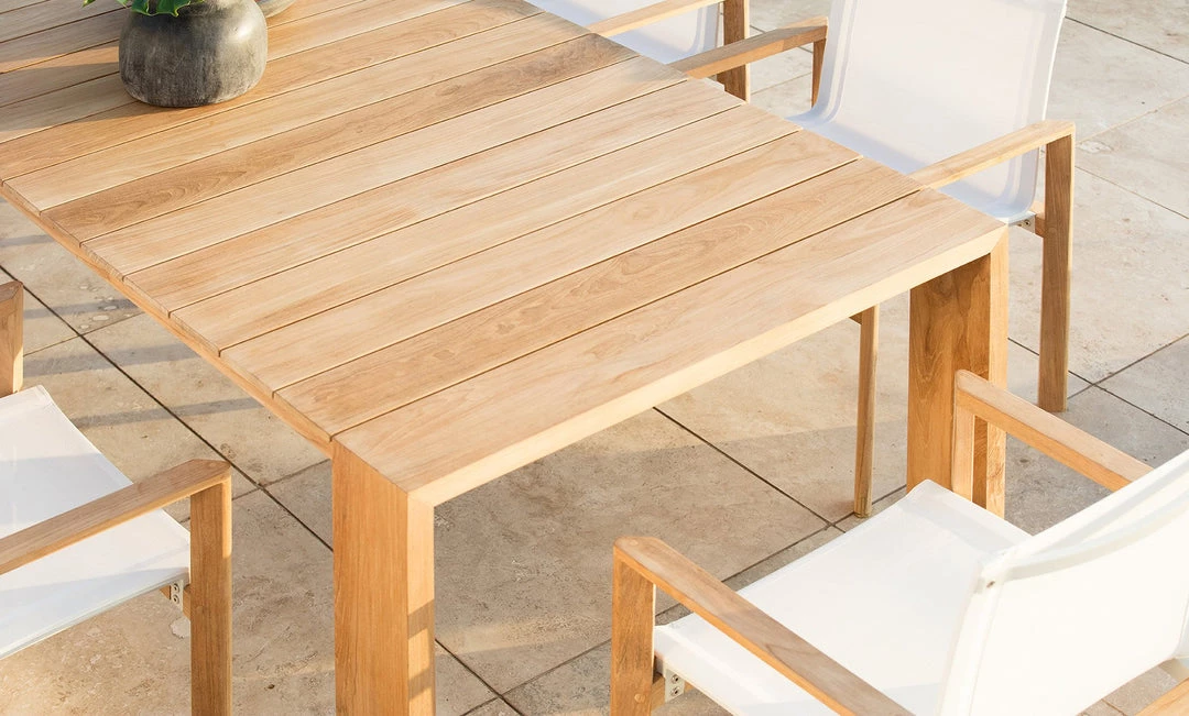 Representing pure modernism, the Hayman Teak Dining Table hard-wearing A-Grade teak frames. It’s superior materials and angular lines are meticulously designed to withstand the elements, making the Hayman collection an ideal choice for the statement-maker. Please note that tables come flat packed and will require assembly.
