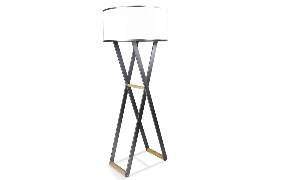 The LCA Floor Lamp will set your space aglow while adding distinctive style to your room. Standing tall, its wide circular shade is founded on an elegant cross-legged structure crafted from solid powder-coated aluminum and made special with accent bars of A-grade Indonesian teak. The careful construction of this lamp not only assures stability but also brings a refreshing and unique detail to the home. The mesh shade allows light to be diffused through to create a pleasant and soft brightness. This lamp simultaneously serves as an ornament and a functional piece.
