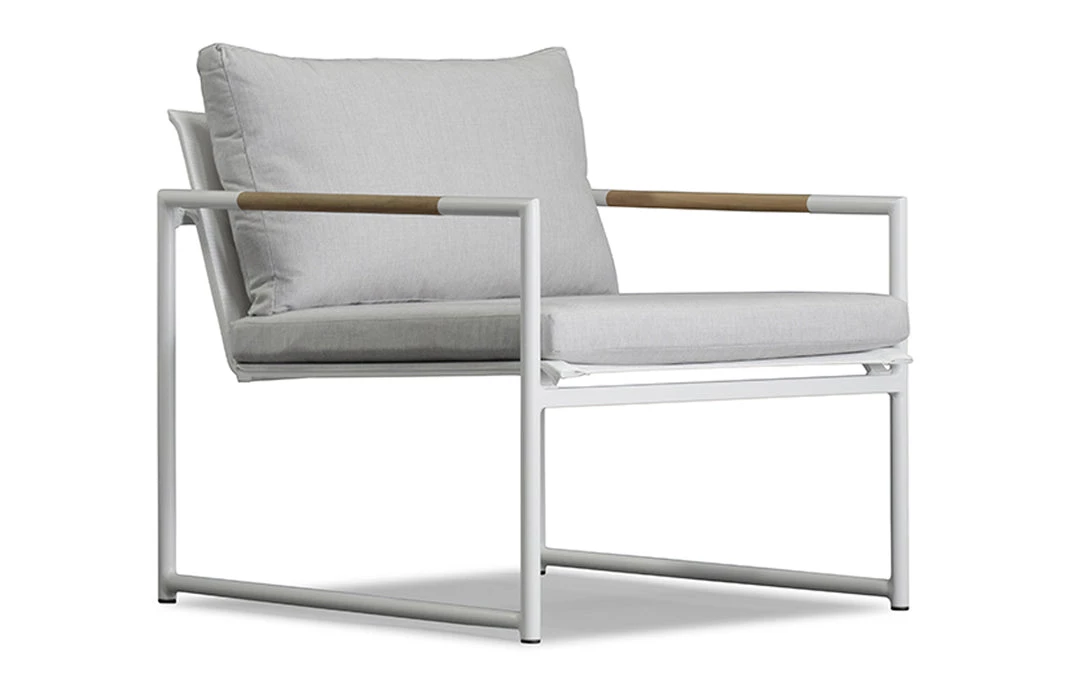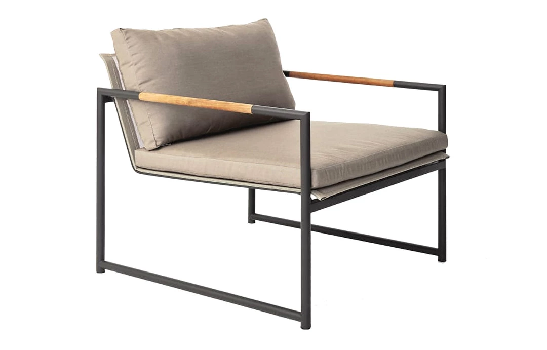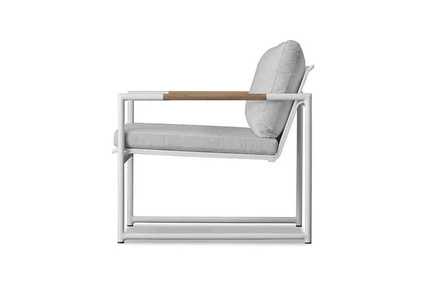 Freshen up your outdoor space with the Breeze Arm Chair. This Arm Chair showcases contemporary design principles of using mixed materials that simultaneously complement and contrast each other to create a unique look that leaves a strong impression. The clean lines of the chair’s aluminum frame are balanced out by the gentle curves of the plush, Sunbrella fabric cushion that sits atop it. Teak inlays in the arms of the chair add warm tones to the cool color palette of the frame and cushion. Besides being a designer piece, this chair is functional. Carefully constructed craftsmanship and high-quality materials make this Arm Chair easy to care for, weather resistant and comfortable.