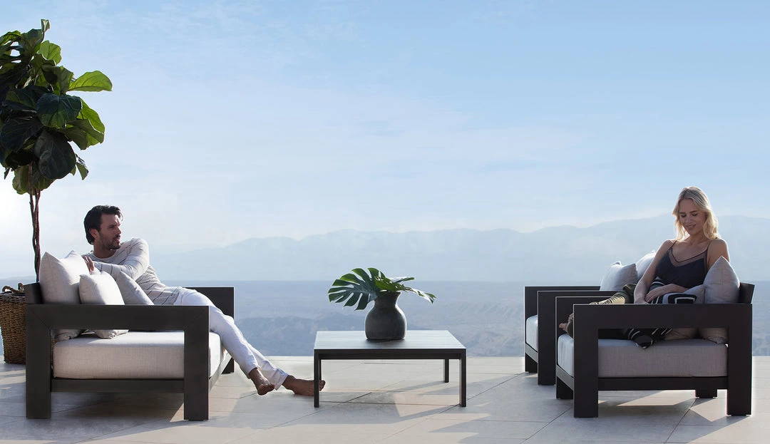 Harbour’s Hampton Arm Chair is inspired by the modern architecture dotting the Hamptons coastline. Craftsmanship and modern elegance come together in an angular yet cozy design. This collection will impress when hosting a summer soiree around the pool or fire and is made to last. Our signature weather-resistant powder-coated aluminum and Sunbrella’s outdoor fabric, will withstand those rainy summer evenings and the scorching summer heat. Bring a piece of Hamptons inspired luxury to your back yard.