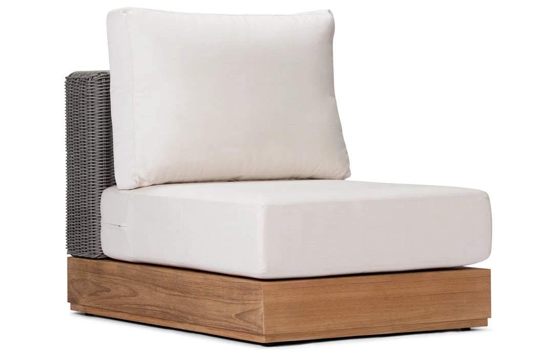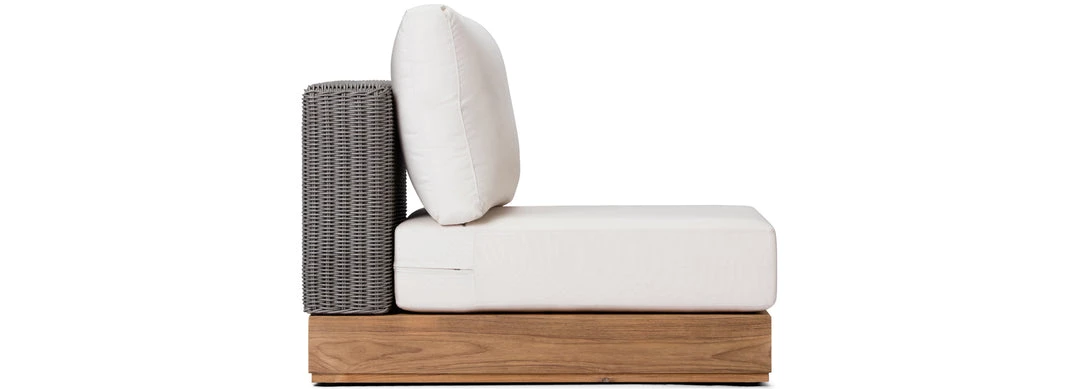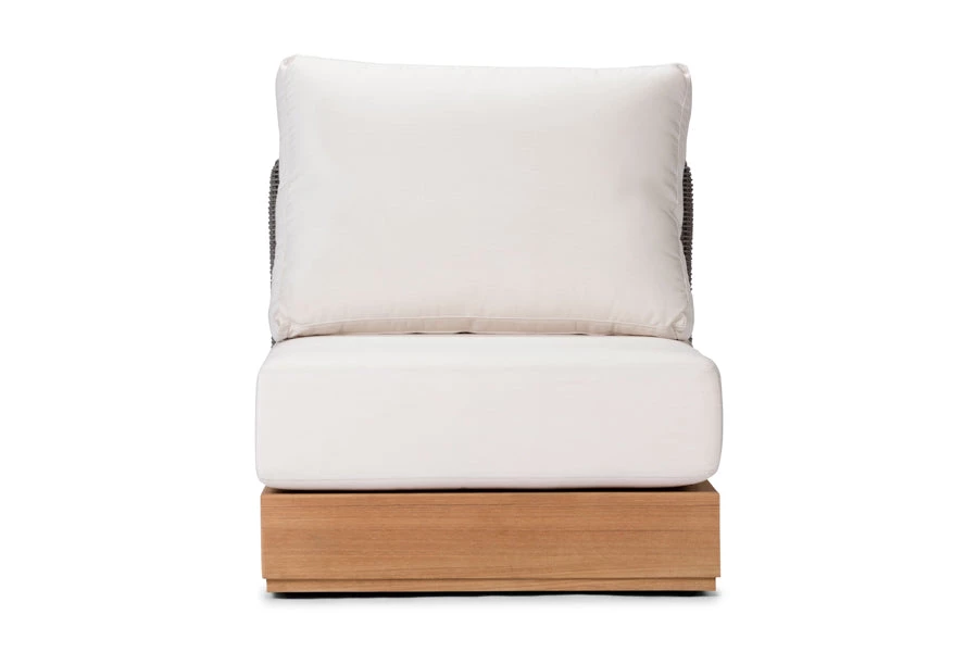A-grade Indonesian Teak frame, All-Weather Wicker strap seat, and extra plush cushion covered in weather-resistant Sunbrella fabric make up the Malabar Single Seat Arm less Chair is an exceptionally supportive and attractive outdoor hit. It features a modern rectangular design ideal for entertaining and perfect for outdoor use in both small or large space living.