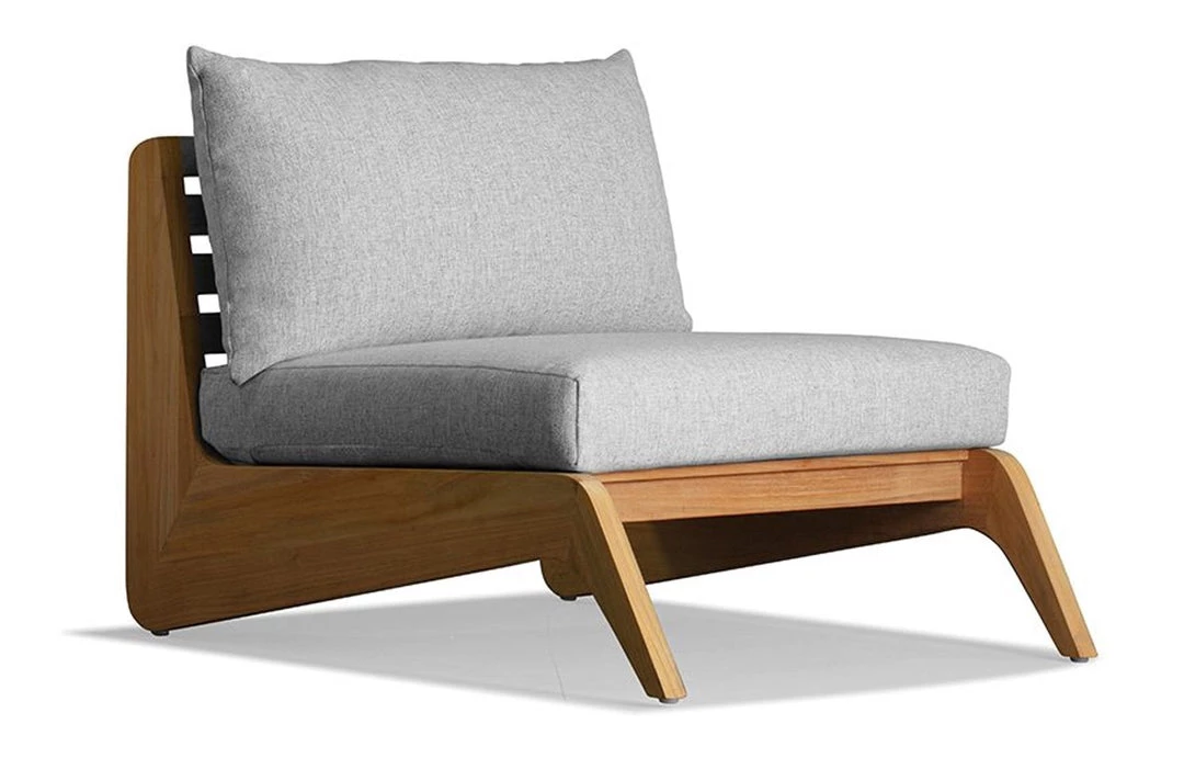 The MLB Easy Chair is designed by internationally acclaimed designer Martyn Lawrence Bullard. The MLB Easy Chair is an outdoor statement piece inspired by some of Martyn’s favorite modern interior pieces. This furniture features our signature Indonesian A-Grade teak in natural and charcoal finishes, featuring quick dry cushions covered in Olefin’s deluxe Copacabana fabric.