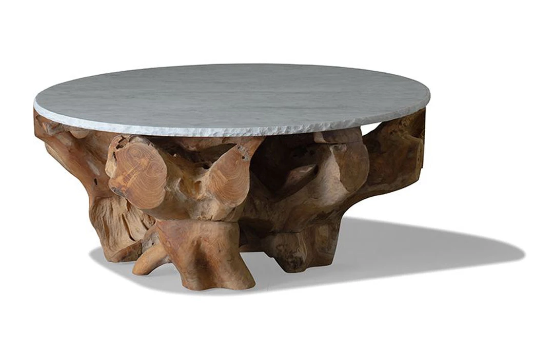 The MLB root coffee table is bold new entertaining piece for your outdoor patio or back yard. In designing the table, internationally acclaimed designer Martyn Lawrence Bullard has given it some truly unique touches. The coffee table was created to be a talking point, showcasing true modern luxury through the use of unique textures and finishes. Each piece displays its own personality through the natural grains in the wood and marble.
