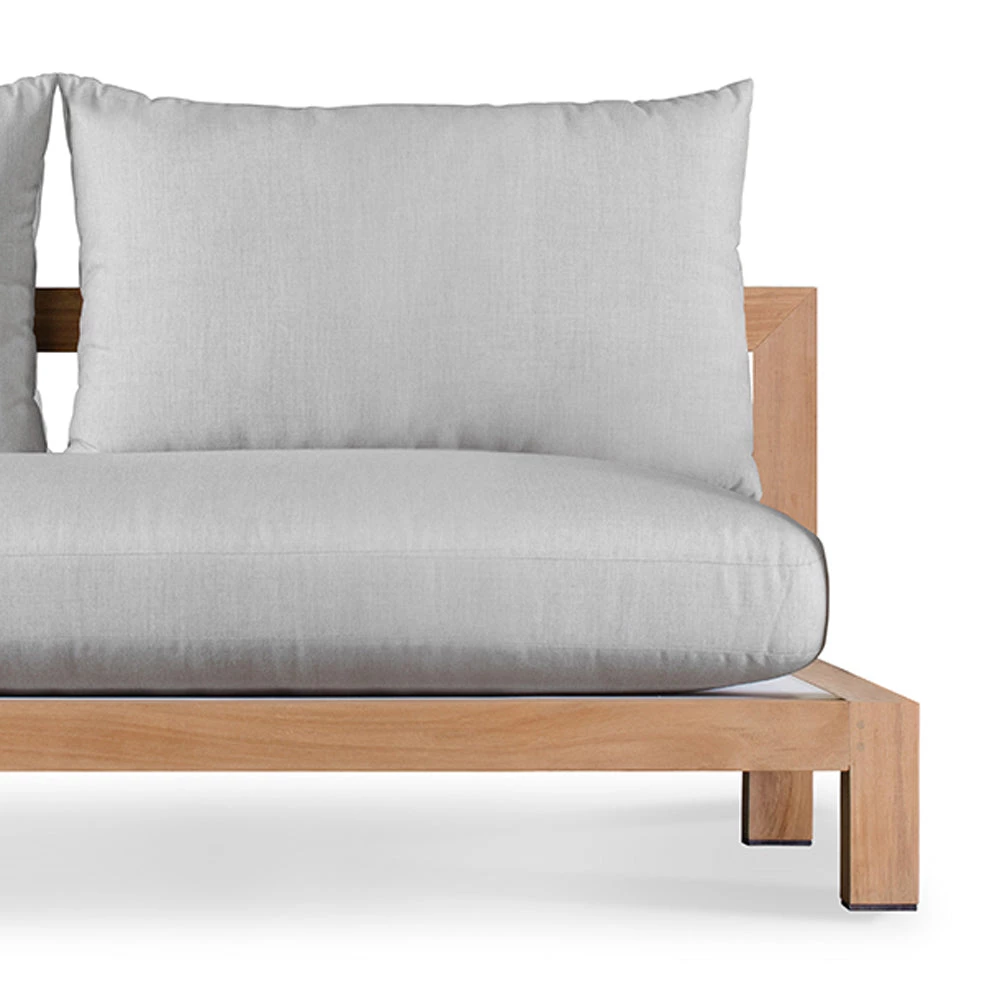 The Pacific 2 Seat Arm less Sofa is designed for comfort, functionality and ease of maintenance. Generously proportioned, the sofa frame is constructed from organic A-grade Indonesian teak. The cushion is covered in Sunbrella fabric – easy-care and weather-friendly, resisting mildew, stains and fading. This sofa is the most flexible piece in this collection as it can be joined to corners, armless piece and armchair. It is a definite must-have in contemporary outdoor spaces.