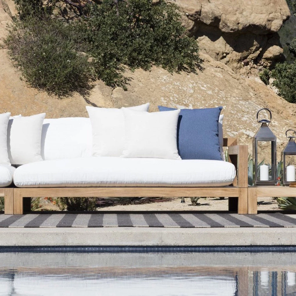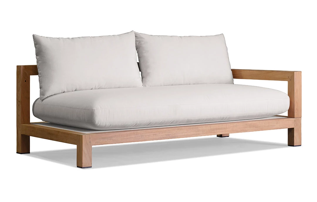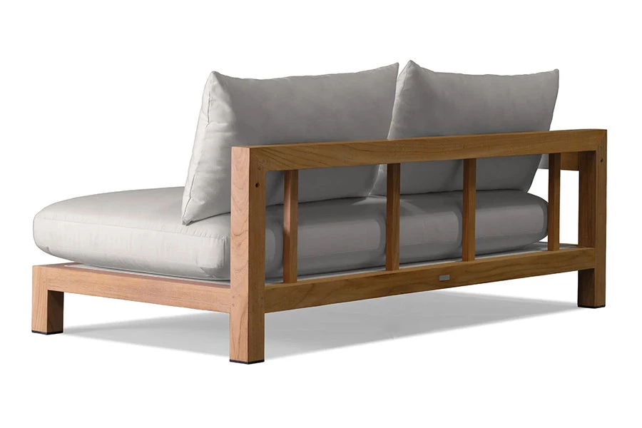 The Pacific 2-Seat 1-Arm Sofa is designed for comfort and has the flexibility of an interchangeable arm. Generously proportioned, the sofa frame is constructed from organic A-grade Indonesian teak. The cushion is covered in Sunbrella fabric easy-care and weather-friendly, resisting mildew, stains and fading. This sofa can be joined to the other modular pieces in this collection and is a definite must-have in contemporary outdoor spaces.