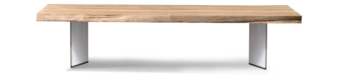 Handcrafted from durable teak wood to stand up to the most extreme weather conditions, the Pure Live Edge Coffee Table will give you just the right amount of additional landing space. The statement-making dining table features a broad live edge top set upon an aluminum sheet dovetail base. Handcrafted, this piece displays a free-form design that is merged with a dose of modern. The wood’s rich characteristics, unique grain and distinct color variations are juxtaposed against its sleek aluminum legs creating an original dining table.