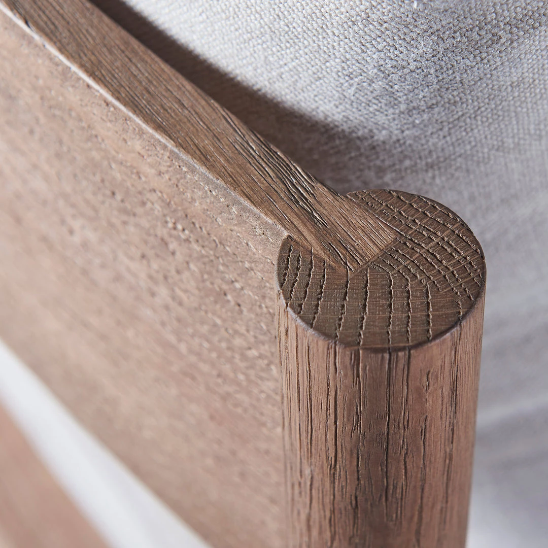 The Rozelle Armless Dining Chair is built considering both comfort and style. Available in Harbour’s luxurious linen, the seating compliments the natural and dark oak finishes perfectly.