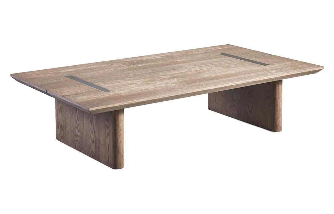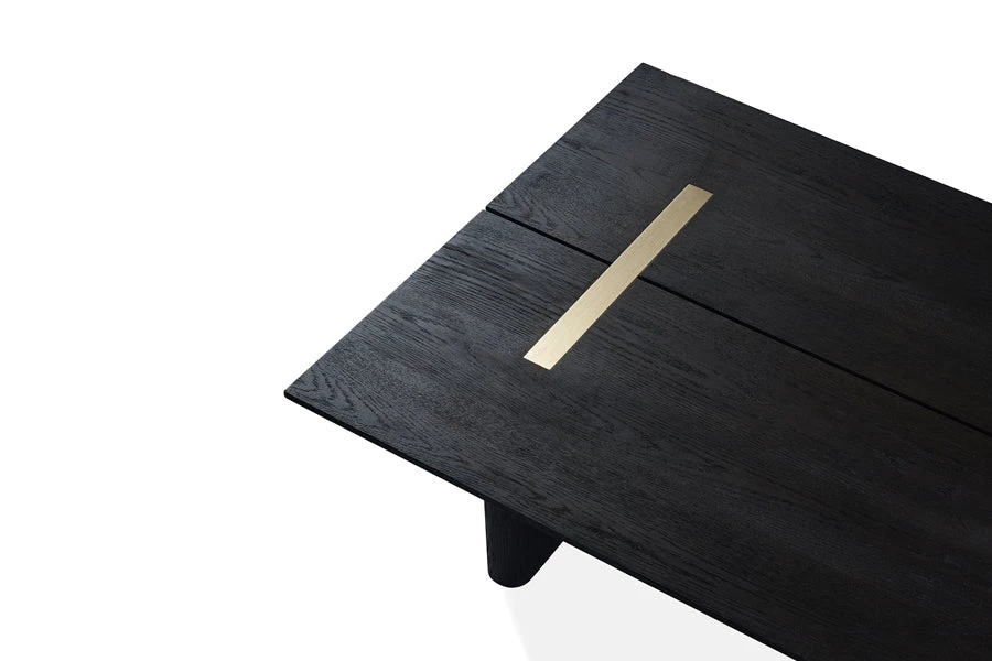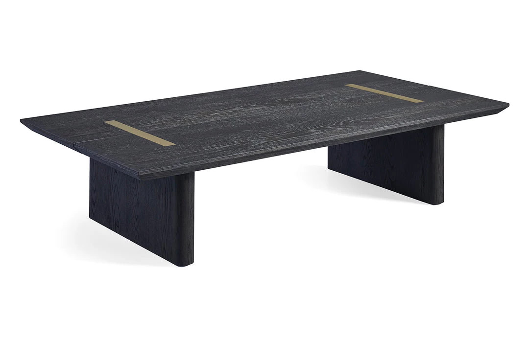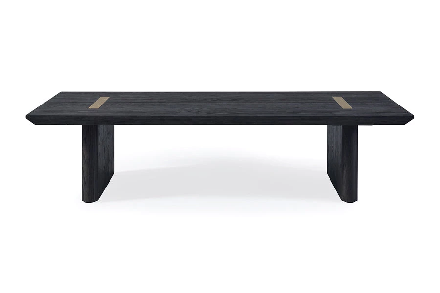 A refined contemporary piece, the Rozelle Rectangular Coffee Table makes a bold statement for the modern dining room. The coffee table features a beautifully textured oak top and the two brass accents create a lovely highlight that will get your guests talking. Available in natural and dark oak finishes.