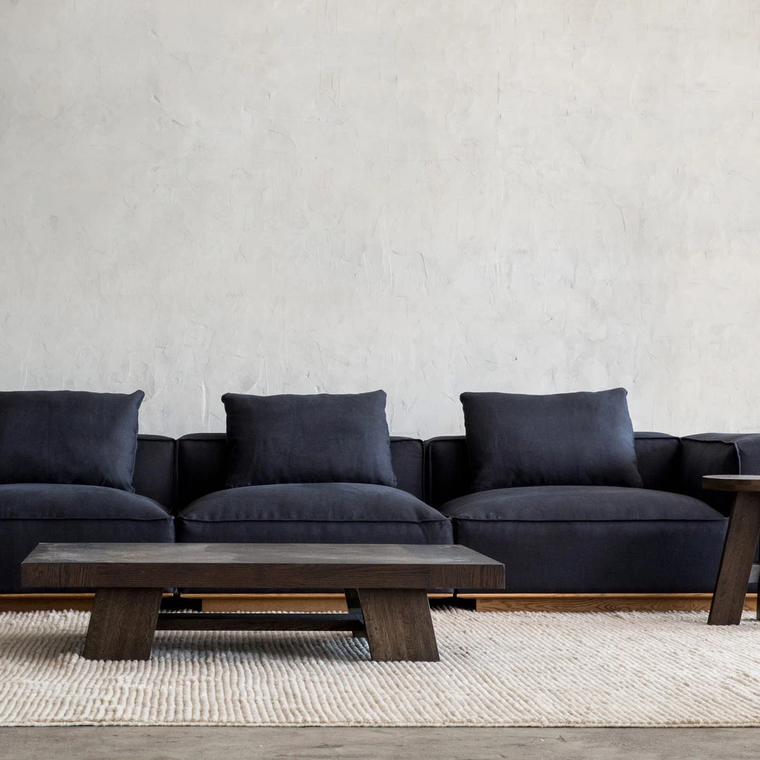 Made for pure relaxation and ultra comfort, the Santorini sofa collection is available in indoor as well as outdoor finishes. Indoor features plush down-filled cushions and a floating oak base. For Harrison and Nicholas Condos the inspiration comes from the Greek island Santorini. These sofas are a natural conversation starter or just a place where relaxation is ensured.