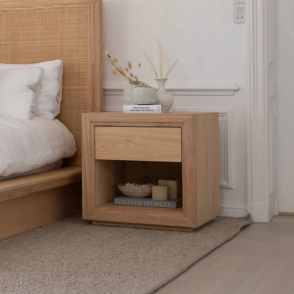 Our San Bianco collection juxtaposes rustic materials with clean lines for a laidback feel. The San Bianco Nightstand exudes a contemporary feel — crafted from solid sandblasted ash with a single matching drawer. A built–in resting shelf creates practical storage. This easygoing piece blends with a variety of spaces and styles — but perfectly pairs with the San Bianco Eastern King Bed, which beautifully takes center stage.