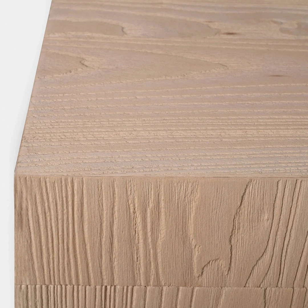 Our Santa Barbara collection mixes refined and straight silhouettes with chunky legs and cut–out detail to create a classic yet cool collection. An impressive scale for your living room sofa, the Santa Barbara Rectangle Coffee Table is the perfect anchor for your seating set — featuring a streamlined bold silhouette in heavily sandblasted solid ash and ash veneers, with chunky legs or round plinth base and a substantial top. A cut–out detail in the base adds light and a geometric element. Simple craftsmanship puts the material center stage, highlighting the unique grains of the wood in the finishing process.