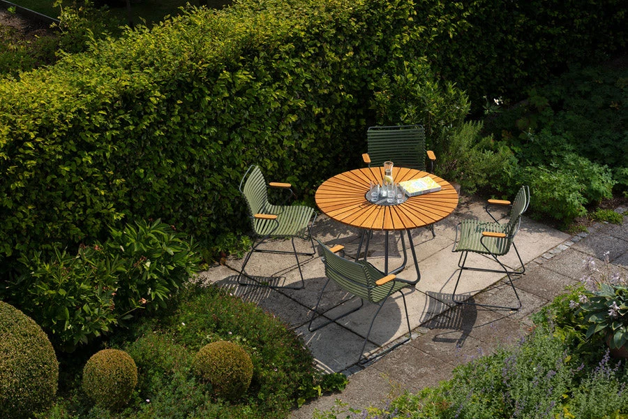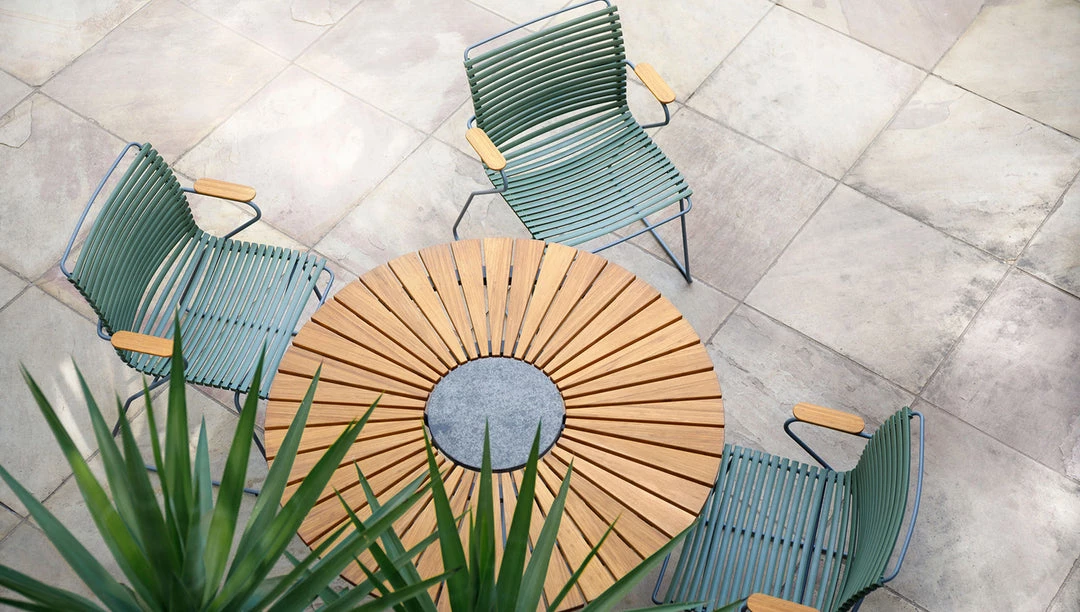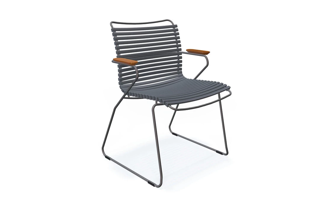 CLICK Dining chair is simple, honest and ergonomically well thought out. It is beautiful in its repetition around the table. The lamellas are composed with exactly the right strength and resilience to provide excellent cushion-free comfort. The lamellas can be CLICKed on and off – which makes it possible to modify the look of the chair simply by changing – or mixing the different lamella colors. CLICK Dining chair comes with or without armrests in 13 colors. CLICK Dining chair with armrests is stackable.