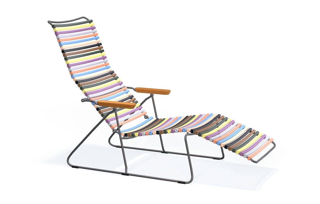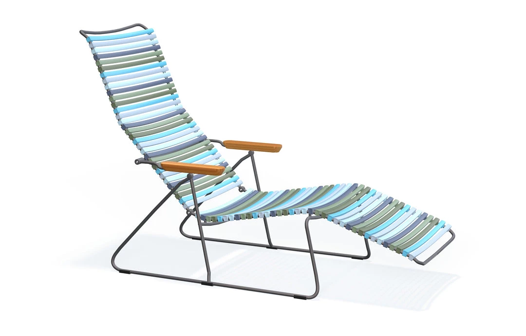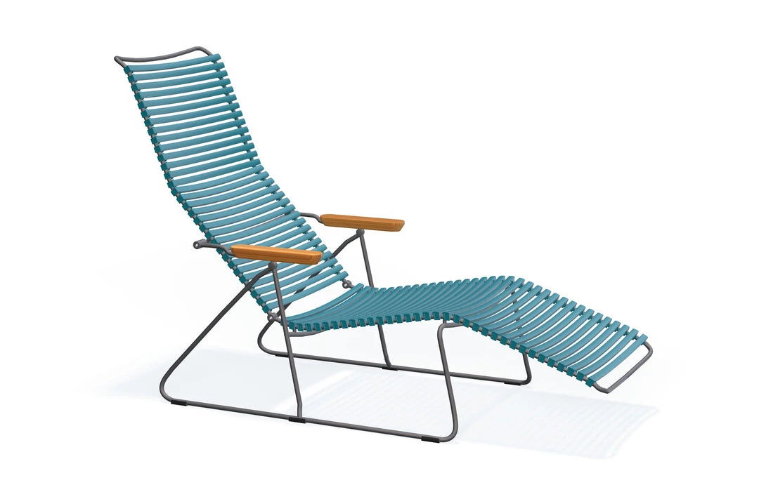 CLICK Sunlounger. The adjustable backrest, is shaped to fit your body perfect in its different positions. The curves make the Sunlounger very sculptural. Sit down, find your position and enjoy.