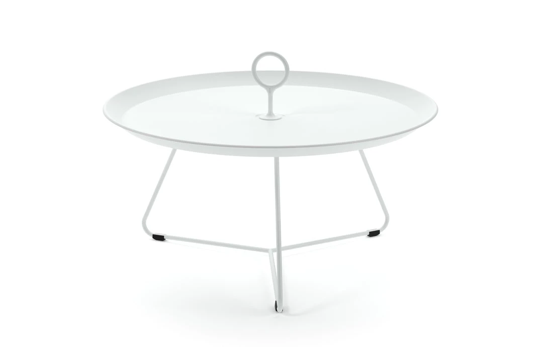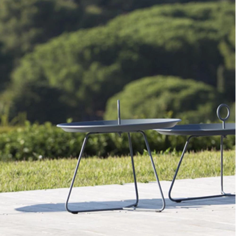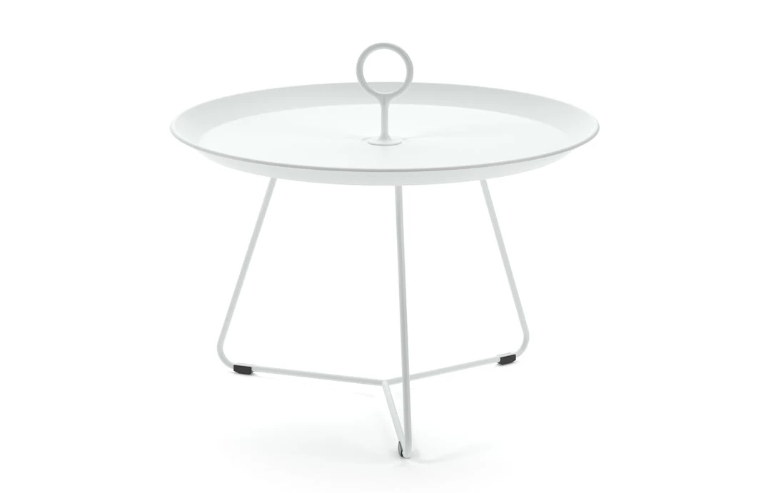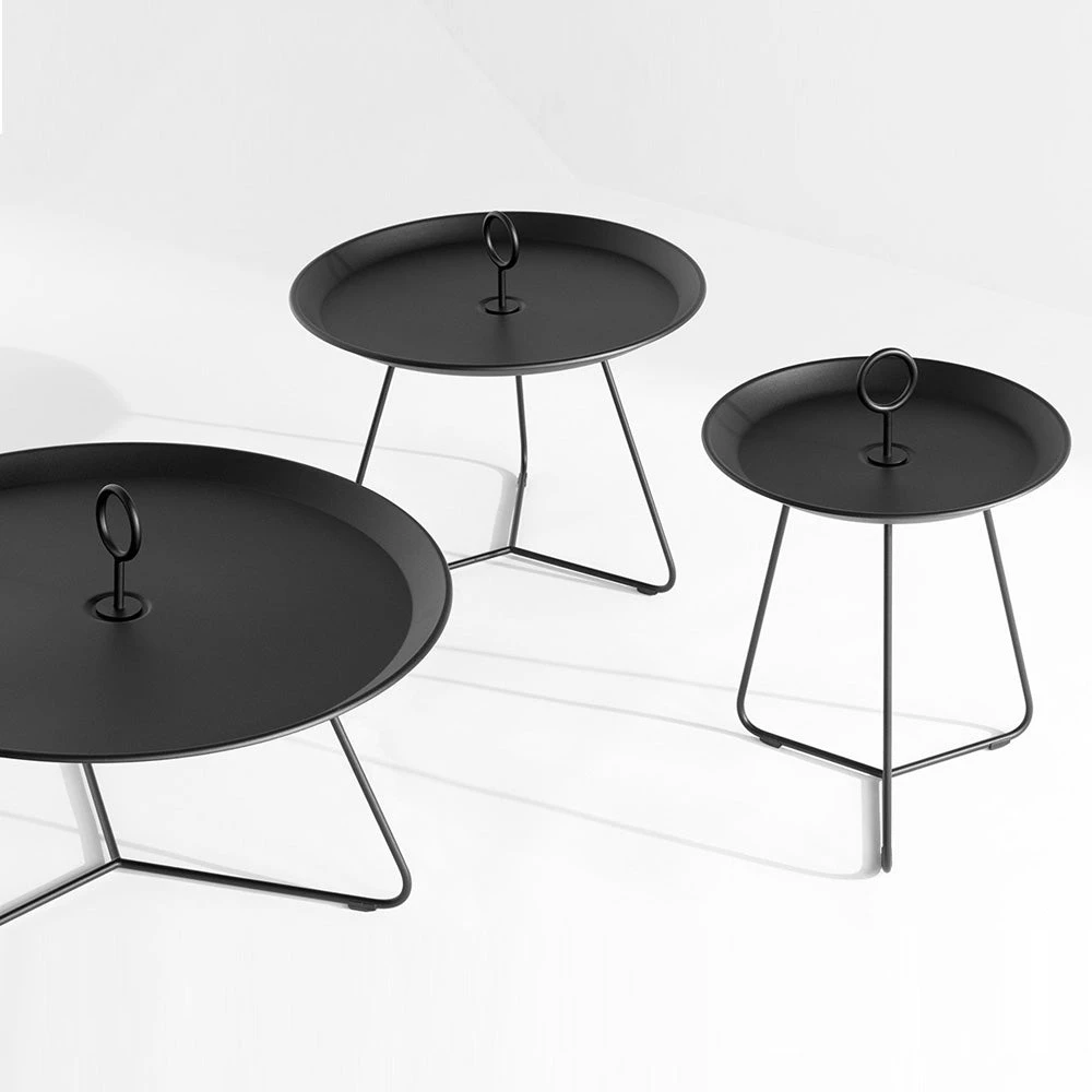 This graphic beautiful side table can be used in many different ways – individually or in a combination of different sizes and colors. The EYELET Tray tables are easy to move to where they are needed – indoor as well as outdoor. The EYELET Tray table has a special drain system, which keeps the tray free from water after a rain shower. EYELET Tray table is made in powder coated steel and aluminum. 3 different sizes: Ø45 cm, Ø57,5 cm and Ø70 cm. Available in 7 different colors.