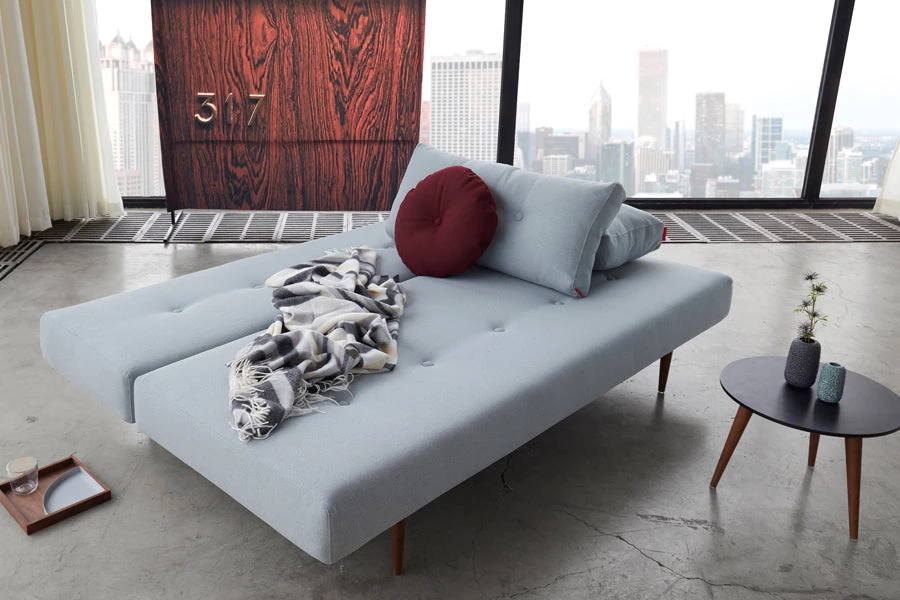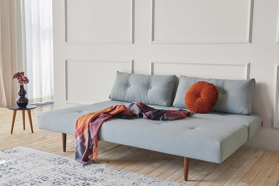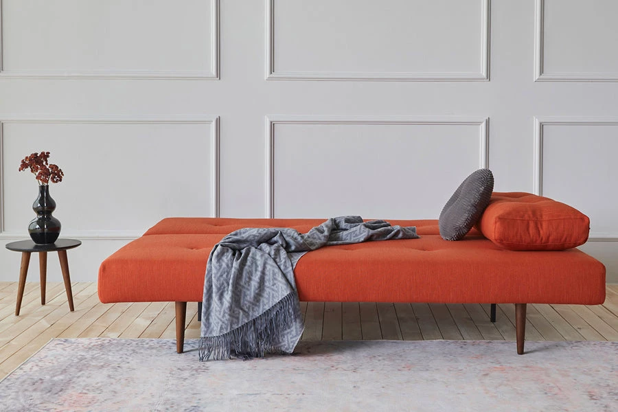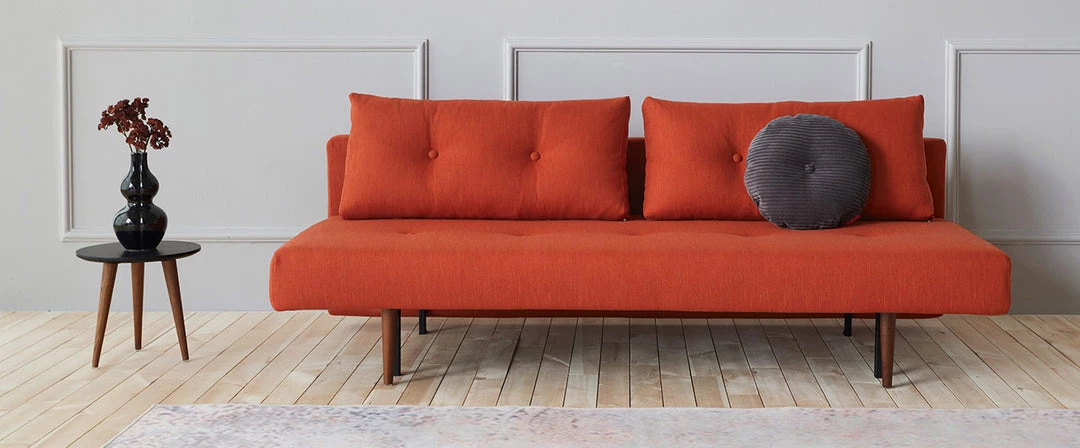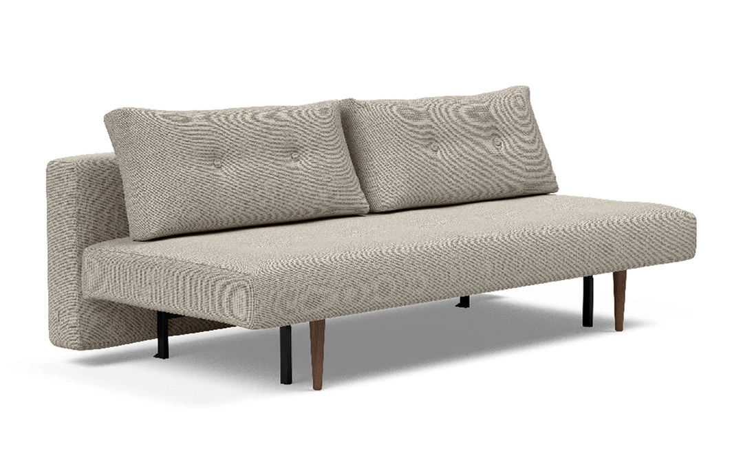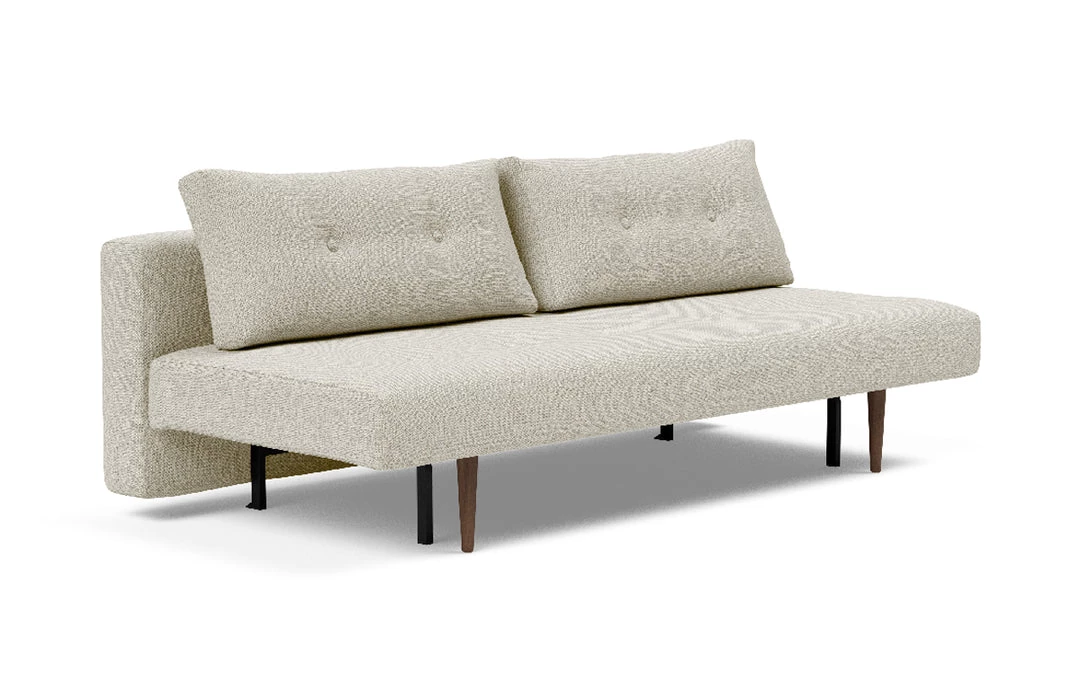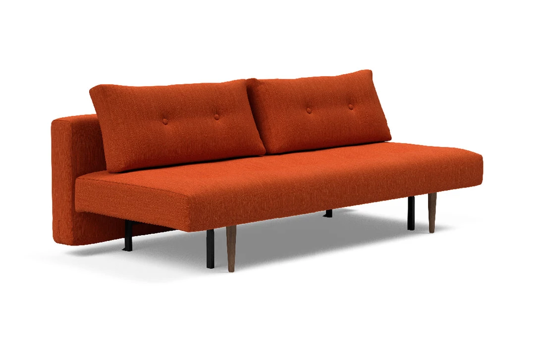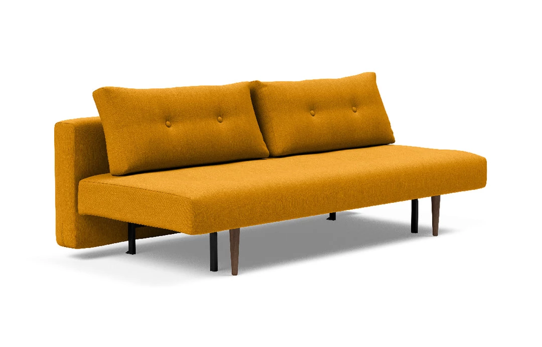 Adorn your living space with a perfect fusion of form and functionality, in form of the Recast Sofa Bed. This retro-styled sofa bed, which gets easily converted from an elegant sofa to a big, comfortable bed, helps you make optimum use of the limited available space in your dwellings. It features a large, plush upholstered seat and backrest. The backrest gets conveniently folded down to let you use the furniture as a bed, whenever you feel the need. Icomfort Pocket Spring suspension offers total comfort while the Mat black steel frame promises a lot of durability. Resting on Walnut Legs, the Recast Sofa Bed flaunts tufted-button styling on the cushions and seat.